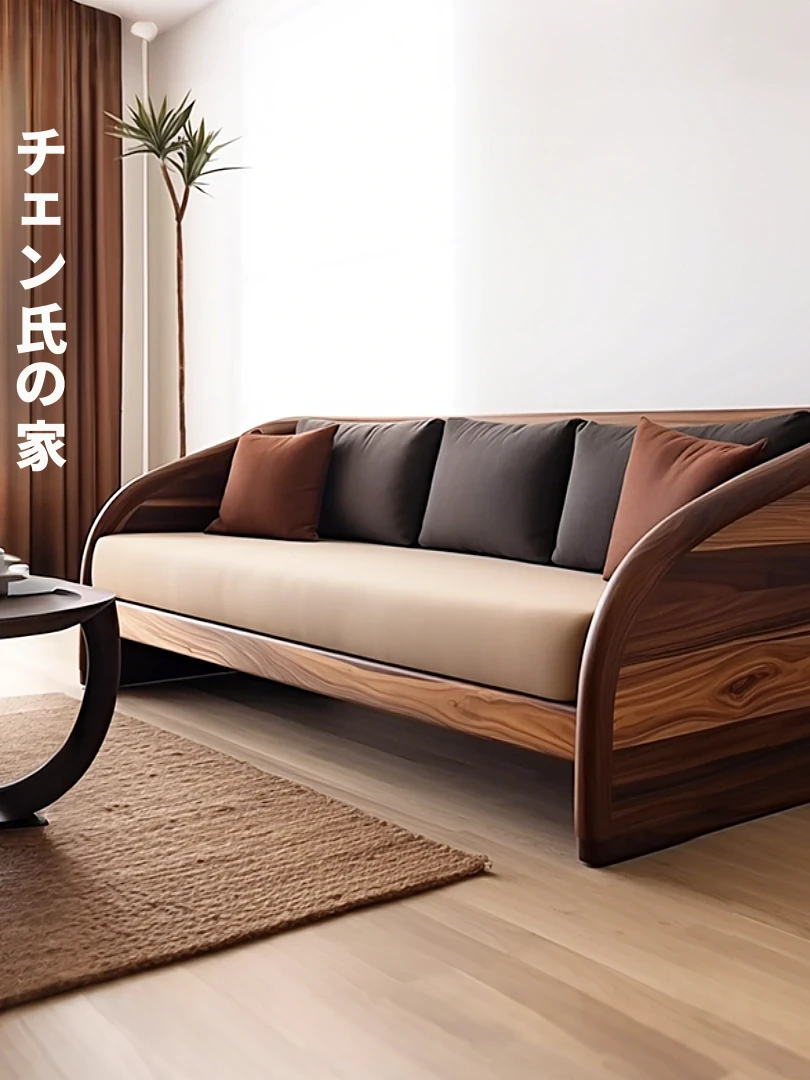 新中式スタイルのウォールナット直排ソファ - 多用途に対応する、リビングや小型住宅に最適な実木製の雰囲気漂うソファ!
