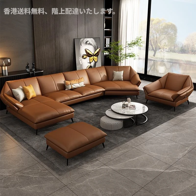 本革使用!イタリアンミニマリズムデザインの本皮ソファ、贅沢なレザーと快適さを兼ね備えたL字型カウチ。広いリビングにぴったりの優雅な水母型ソファ、特別な空間を演出します。