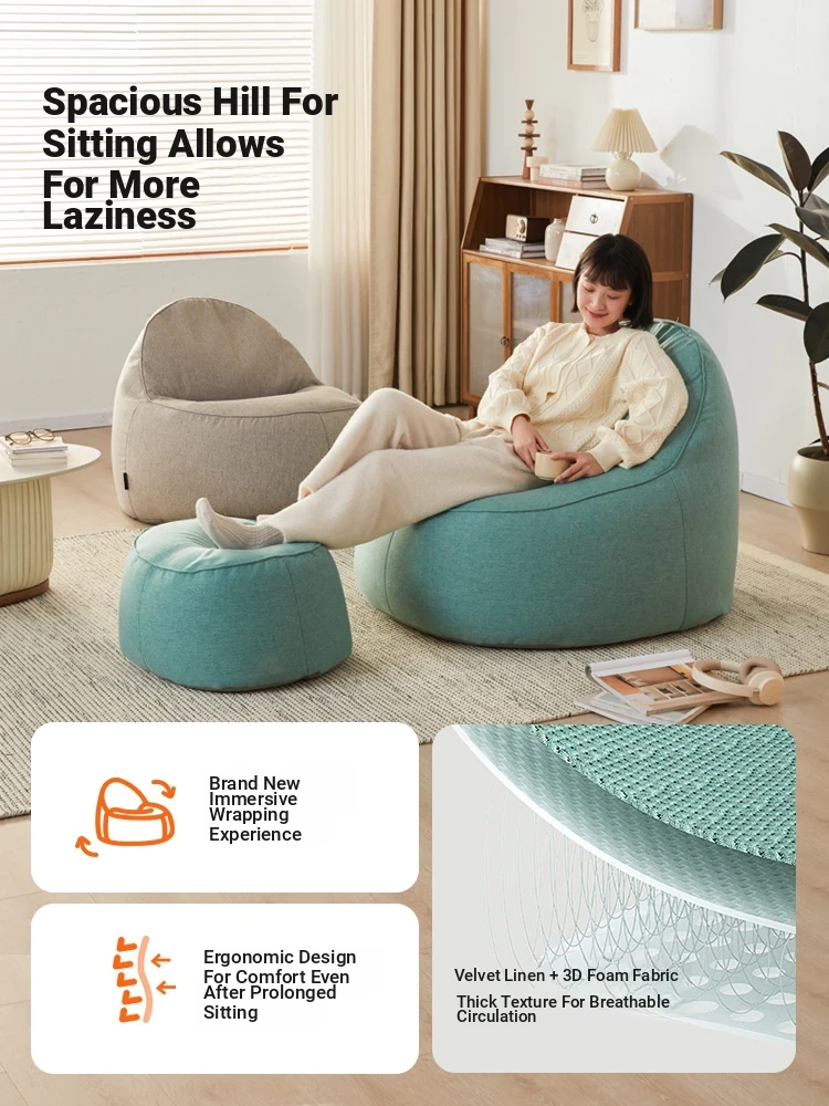 Nordic Ins Style Single Lazy Bean Bag Sofa - Perfect for Living Room, Bedroom, or Balcony - Cozy Double Tatami Lounge Chair for Small Spaces