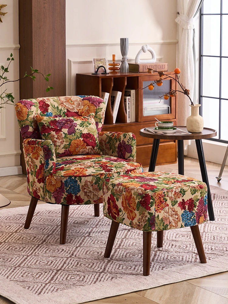 Vintage Single Sofa Chair - American Style Upholstered Lounge Chair for Balcony and Living Room - Cozy Floral Design for Home Relaxation