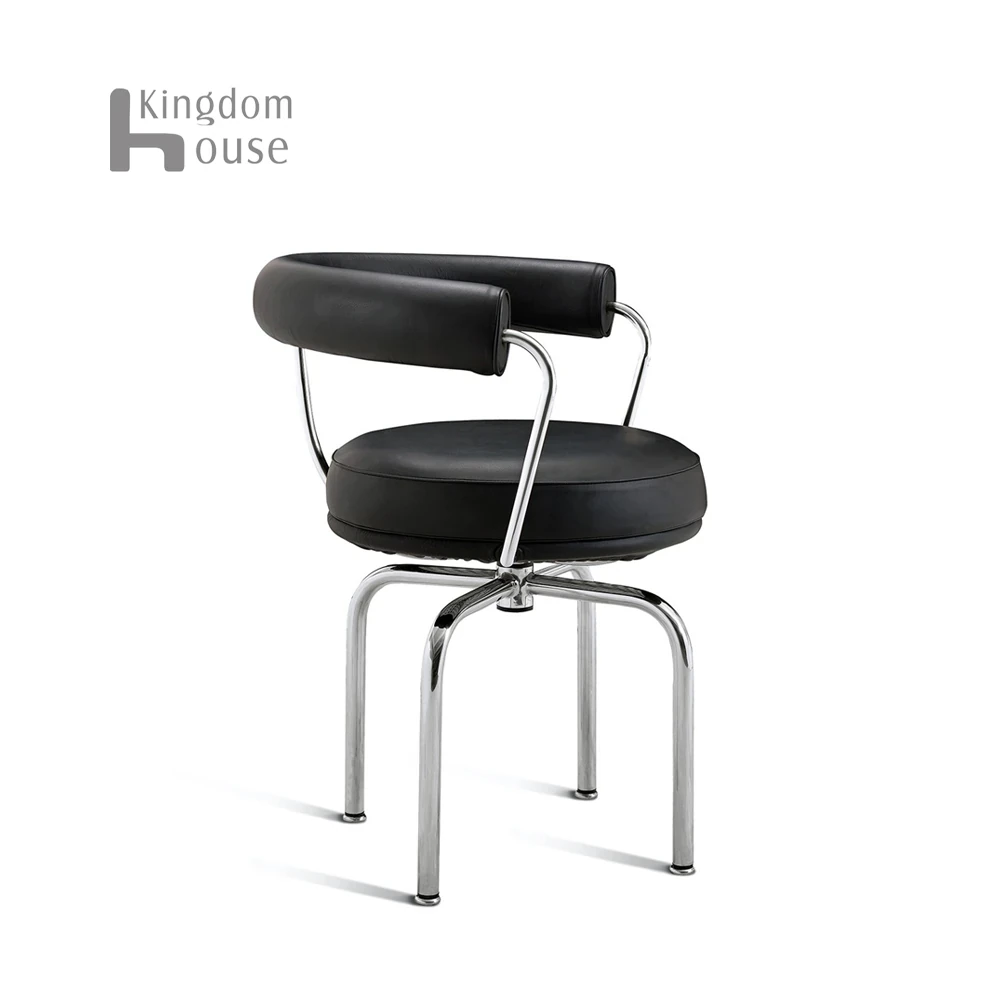 LC7 Vintage Stainless Steel Dining Chair - Home Luxury Modern Rotating Backrest for Relaxation, Office Meetings, and Study Desks