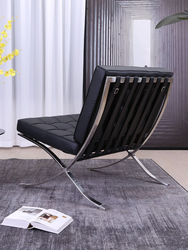 Luxury Barcelona Chair - Modern Minimalist Single Sofa in Genuine Leather for Stylish Living Room Design