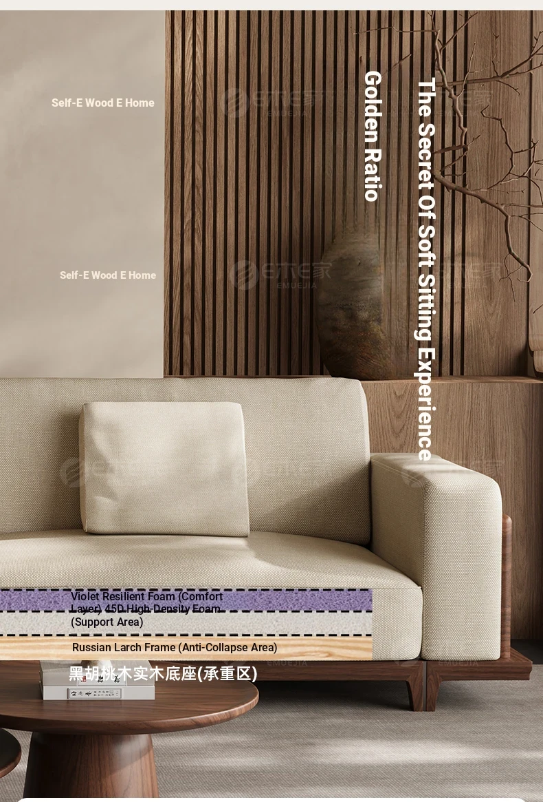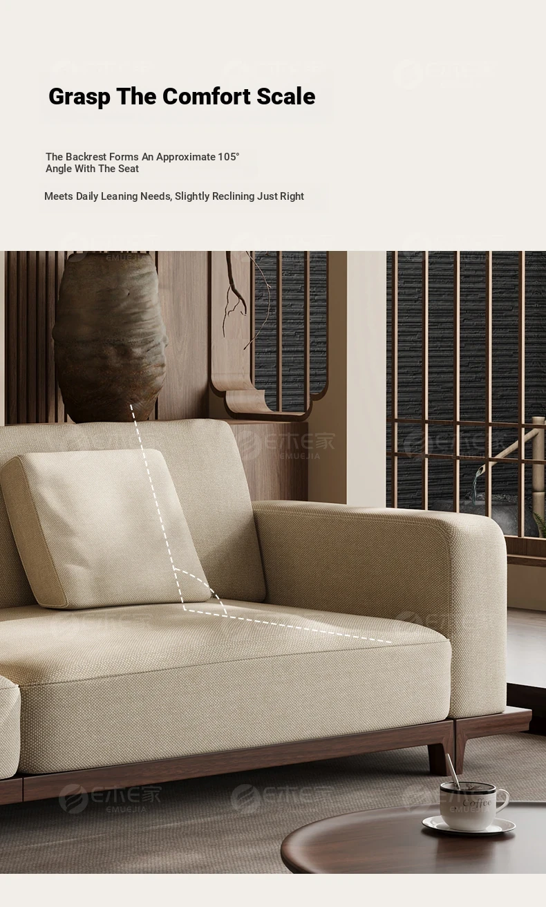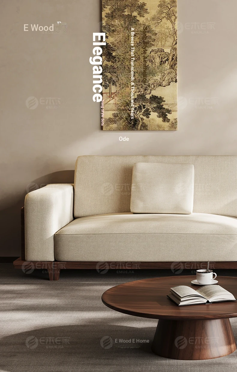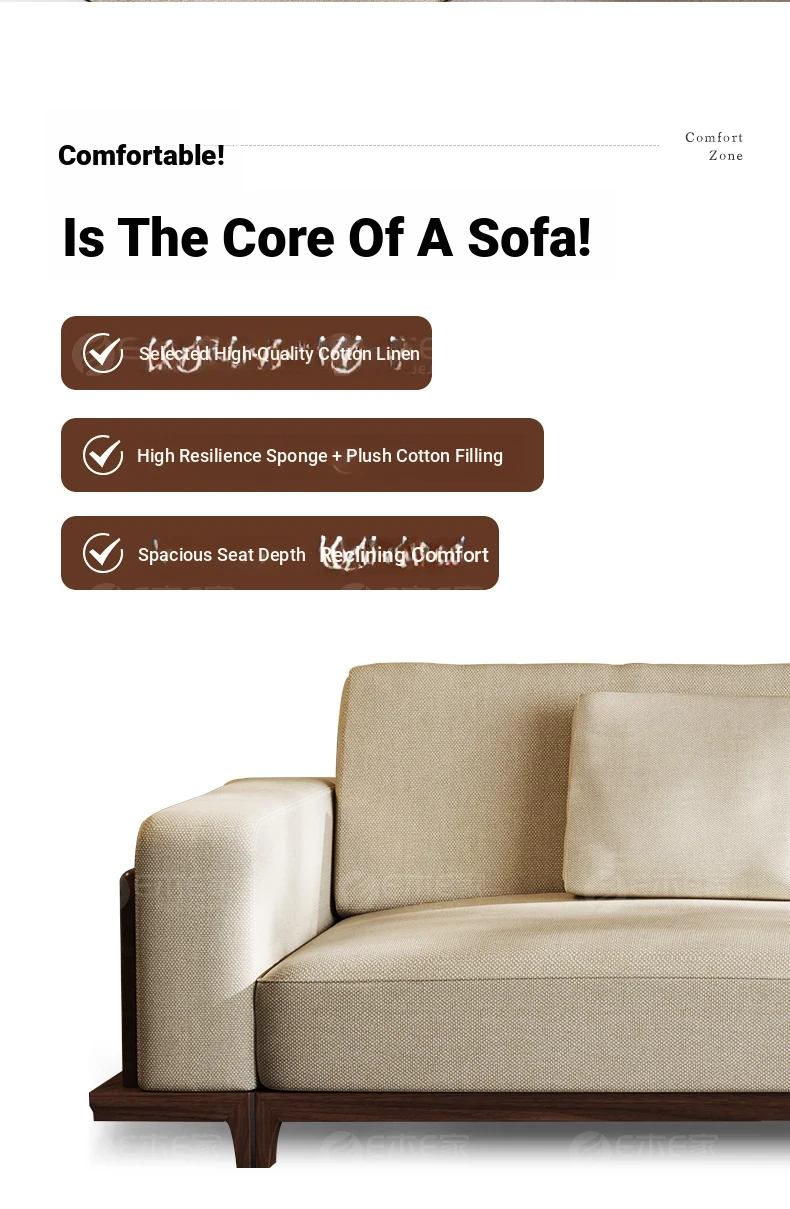 2025 New Arrival: Song Style Aesthetic Black Walnut Cotton Linen Sofa - Zen-Inspired Straight Wooden Four-Seater in Modern Chinese Design