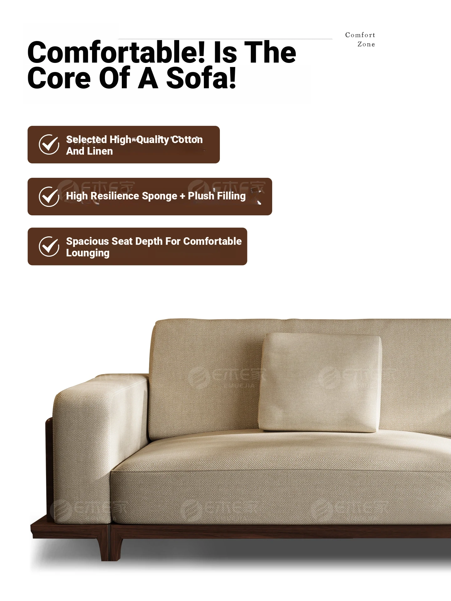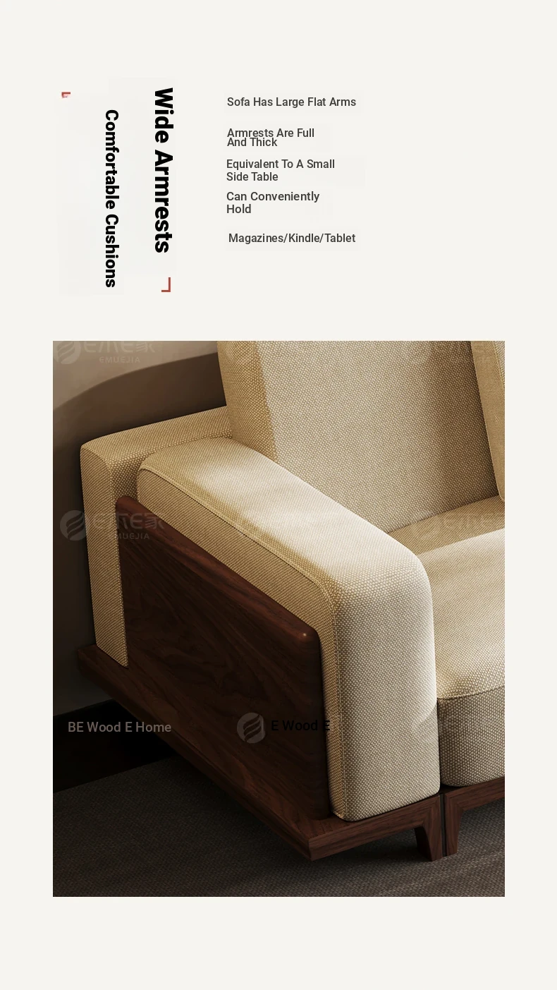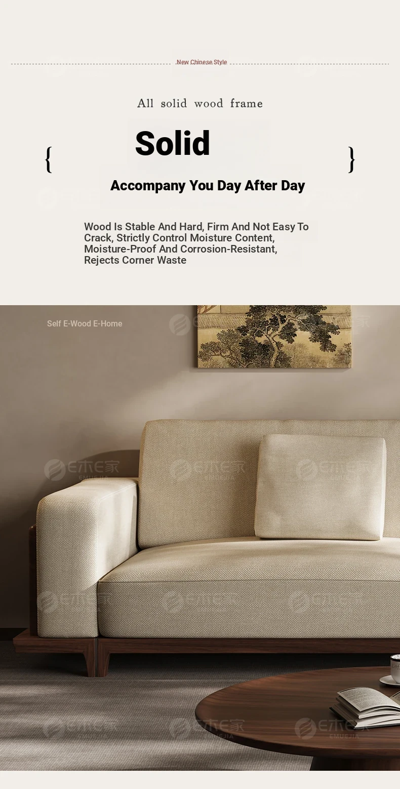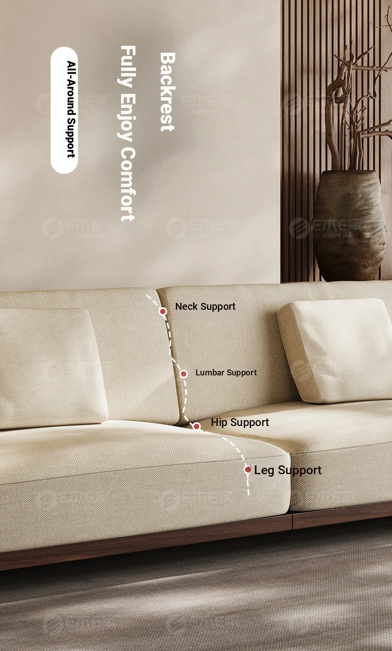 2025 New Arrival: Song Style Aesthetic Black Walnut Cotton Linen Sofa - Zen-Inspired Straight Wooden Four-Seater in Modern Chinese Design