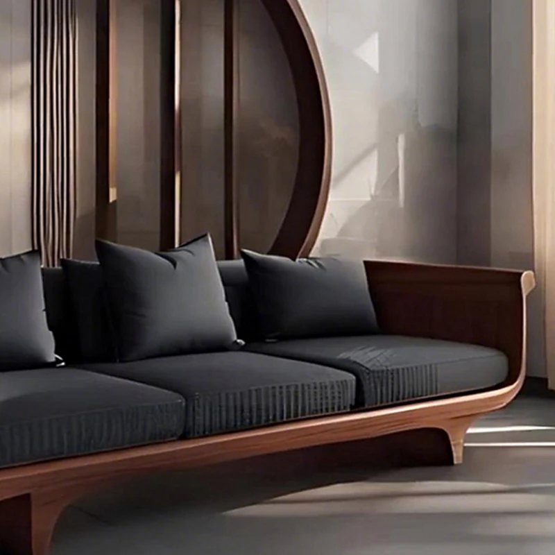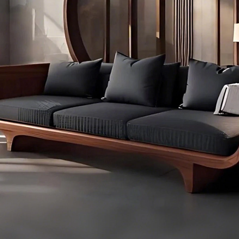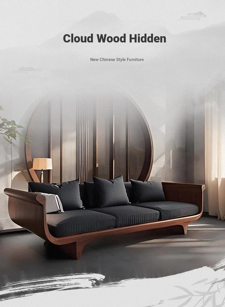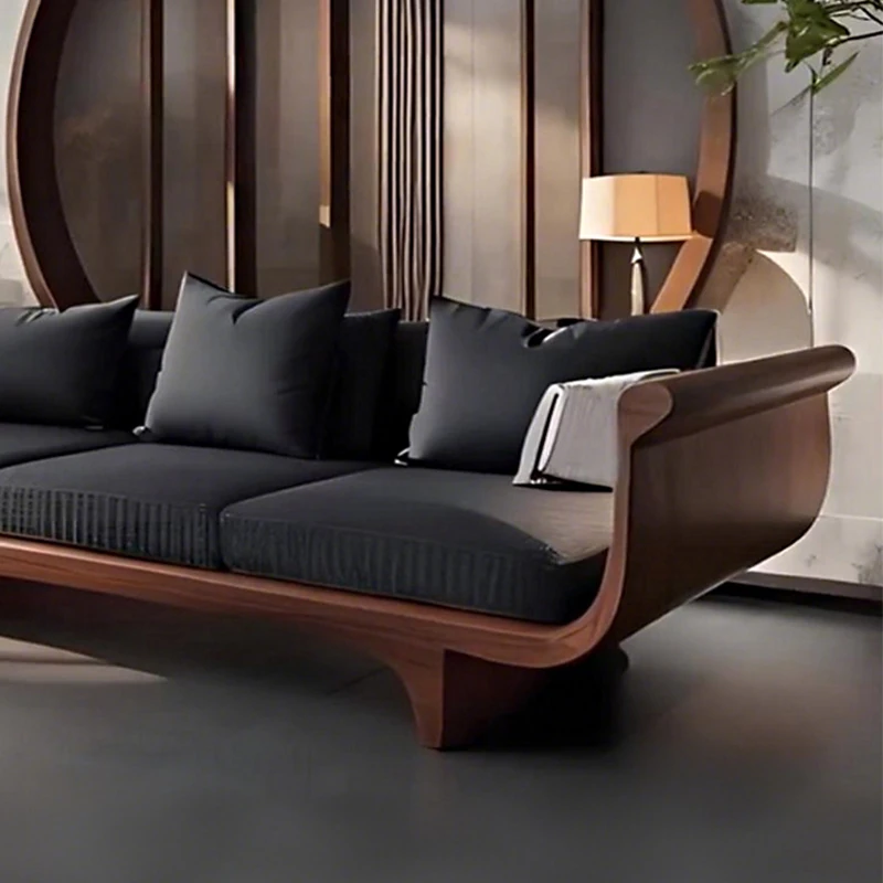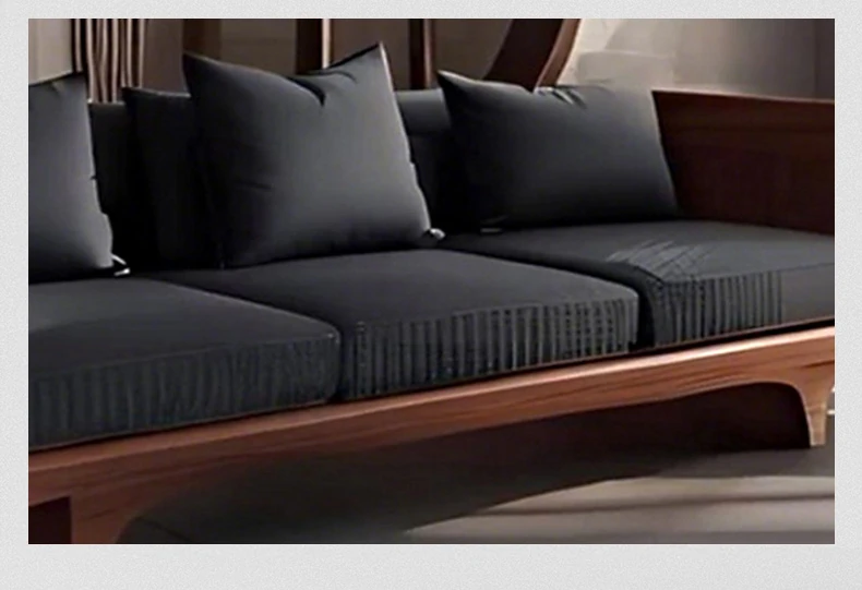 2025 New High-End Solid Wood Sofa in Modern Chinese Style – Elegant Black Walnut Zen Living Room Sofa with Genuine Leather, Three-Seater for Home Use