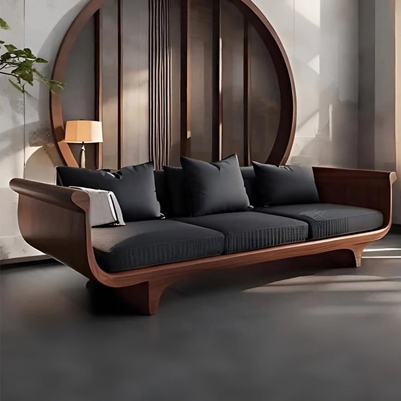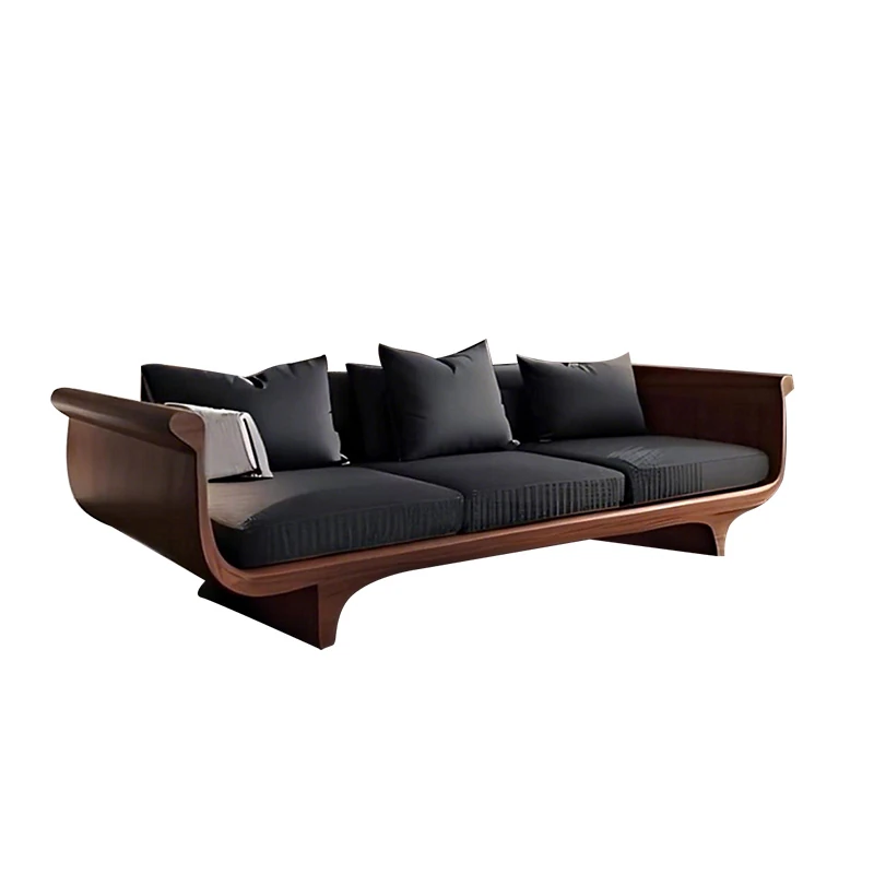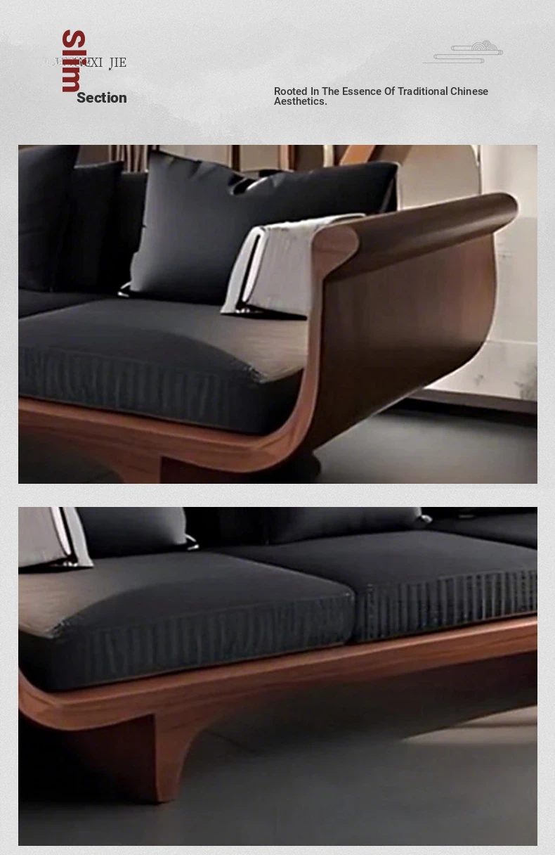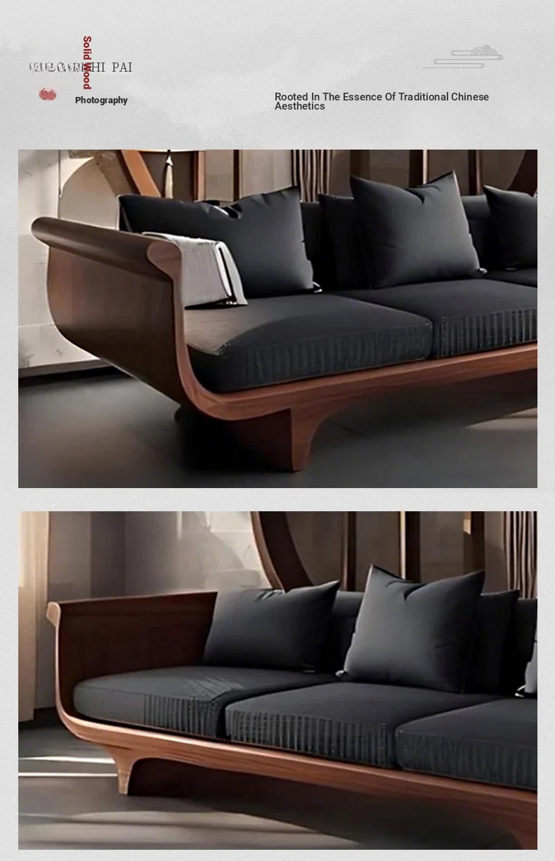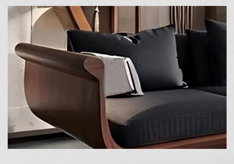 2025 New High-End Solid Wood Sofa in Modern Chinese Style – Elegant Black Walnut Zen Living Room Sofa with Genuine Leather, Three-Seater for Home Use