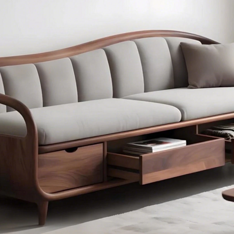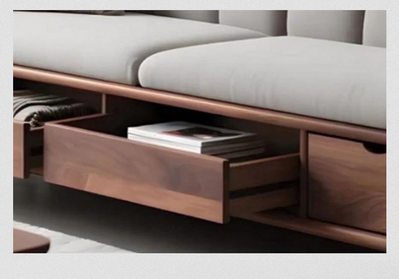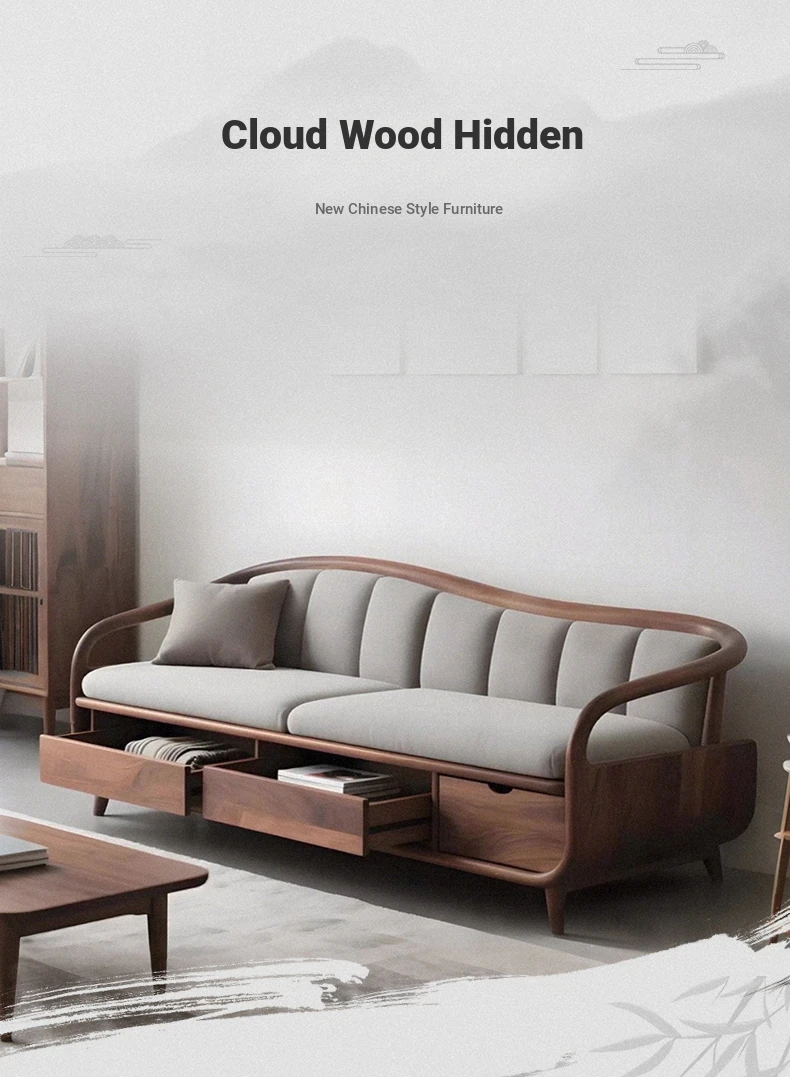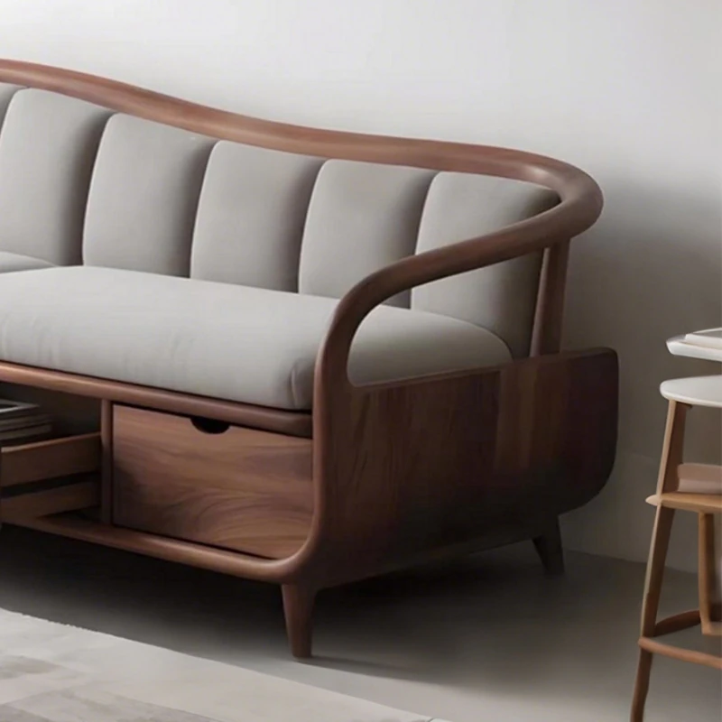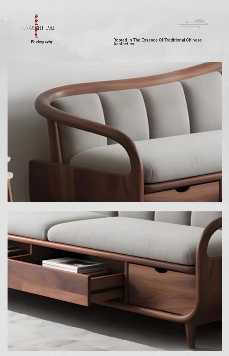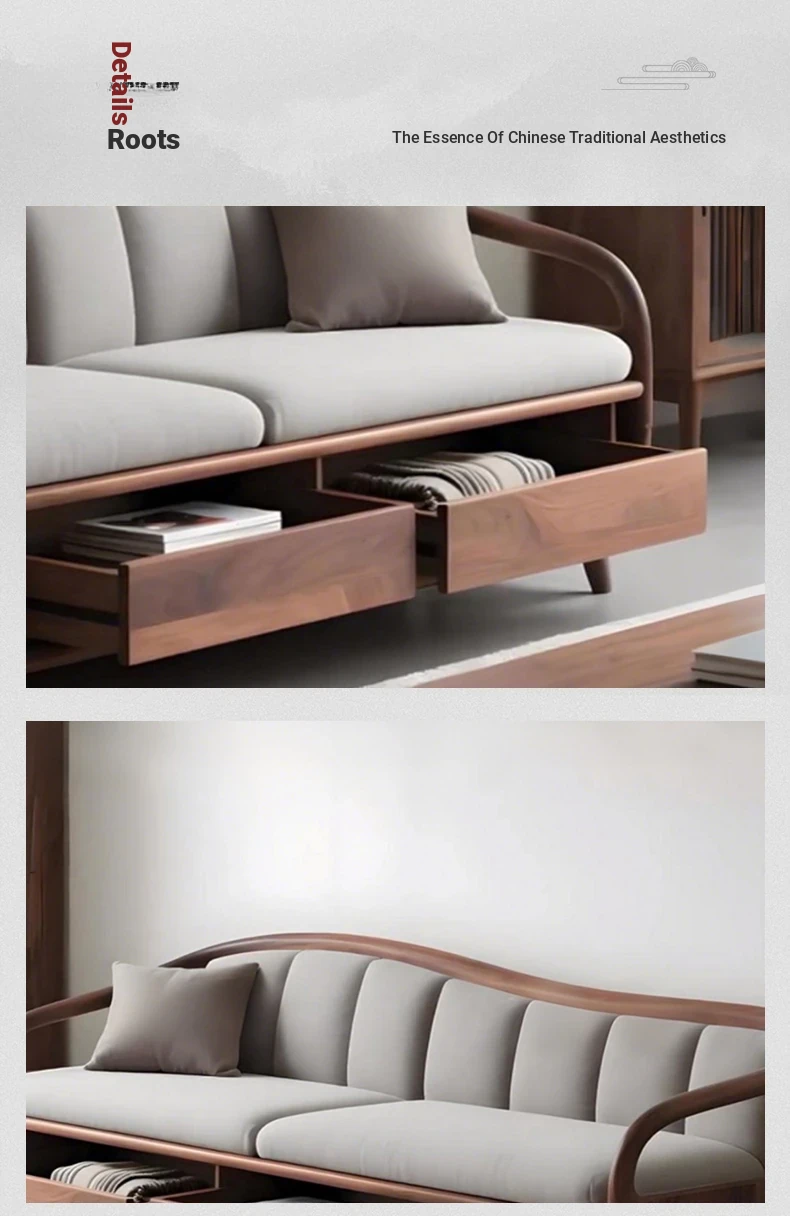 2025 New High-End Solid Wood Sofa in Modern Chinese Style - Designer Straight Storage Sofa in Luxurious Black Walnut for Villa Living Room
