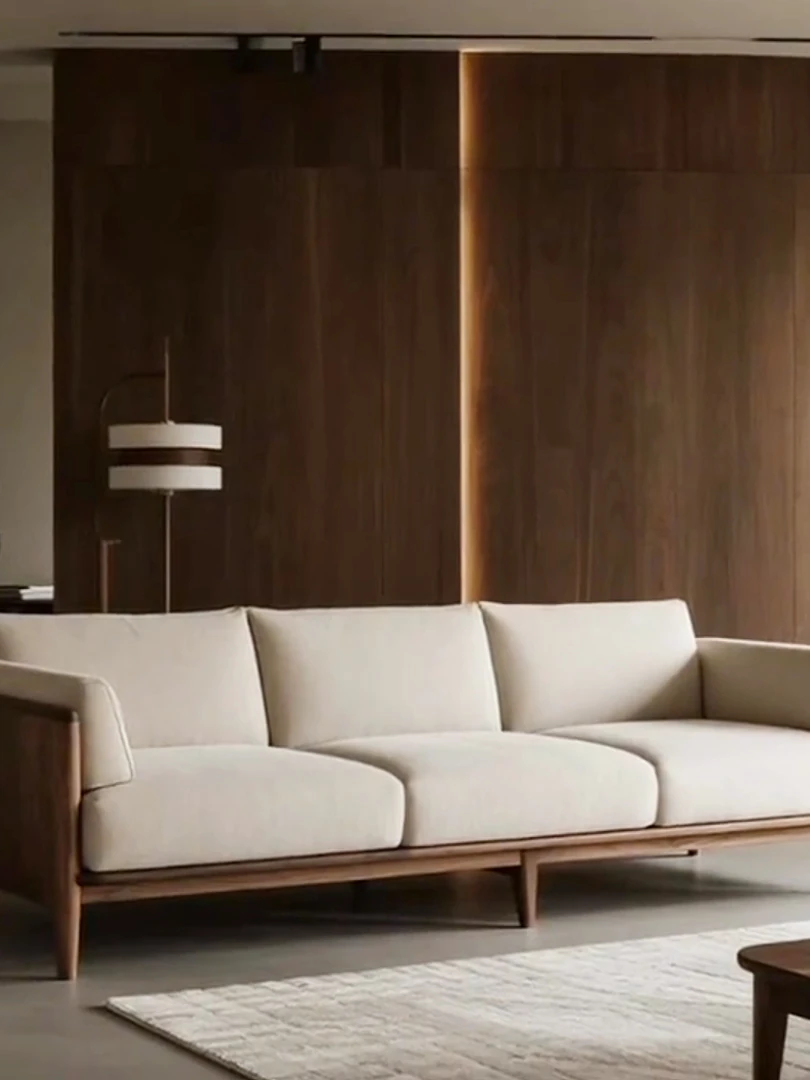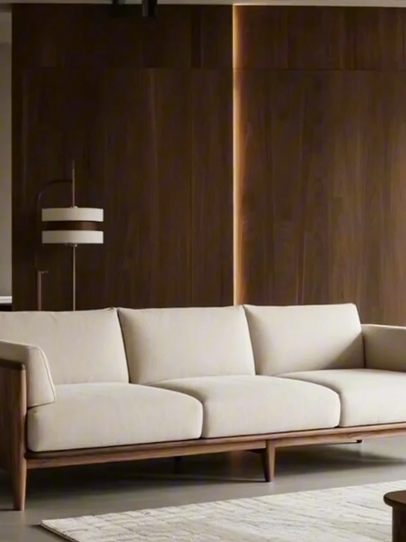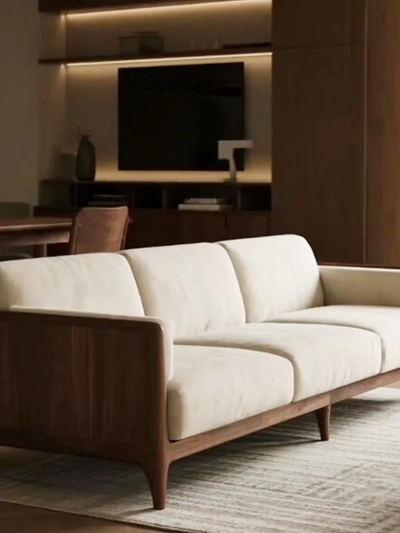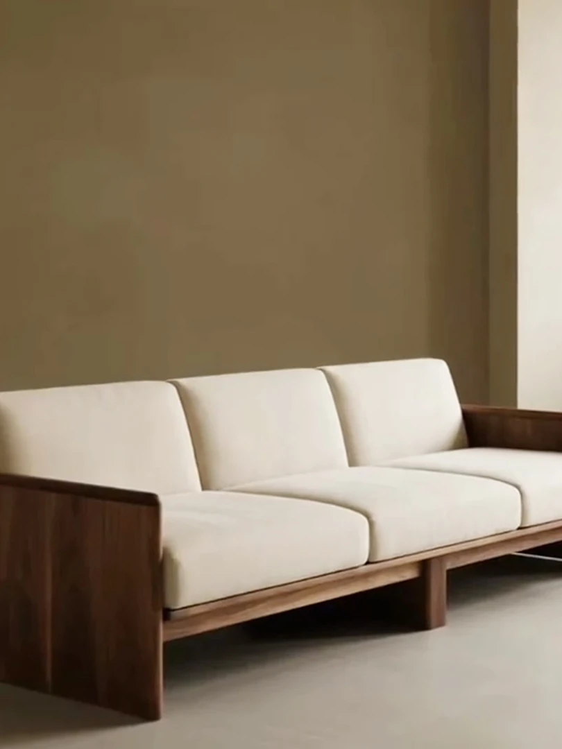 2025 New Luxury Small Apartment Chinese Style Sofa - Solid Wood Black Walnut Living Room Sofa, Elegant Straight Design for Cozy Home Spaces