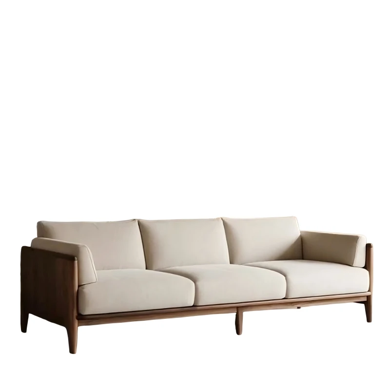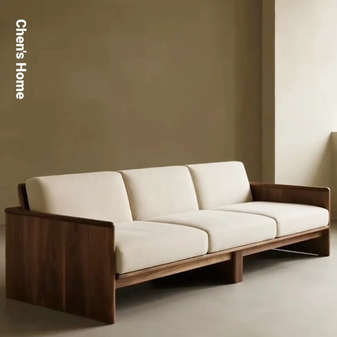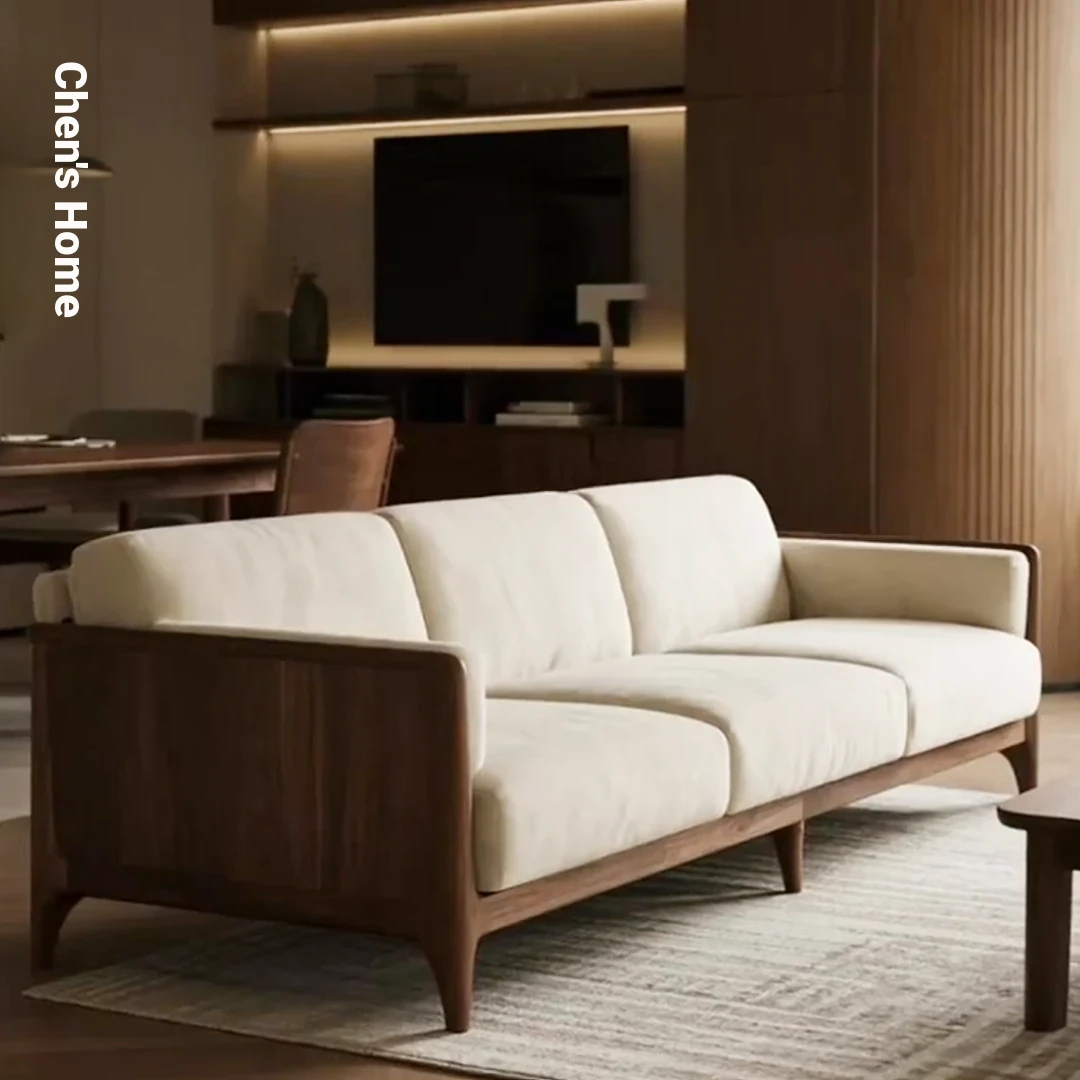 2025 New Luxury Small Apartment Chinese Style Sofa - Solid Wood Black Walnut Living Room Sofa, Elegant Straight Design for Cozy Home Spaces