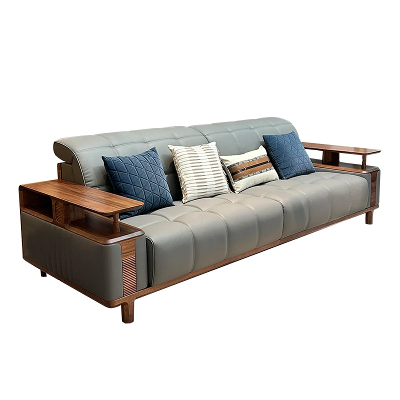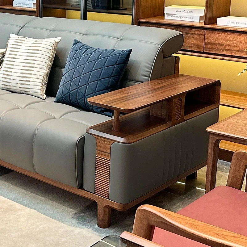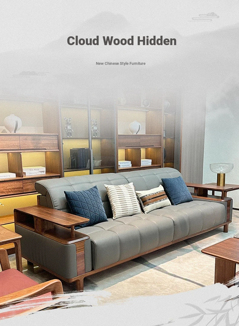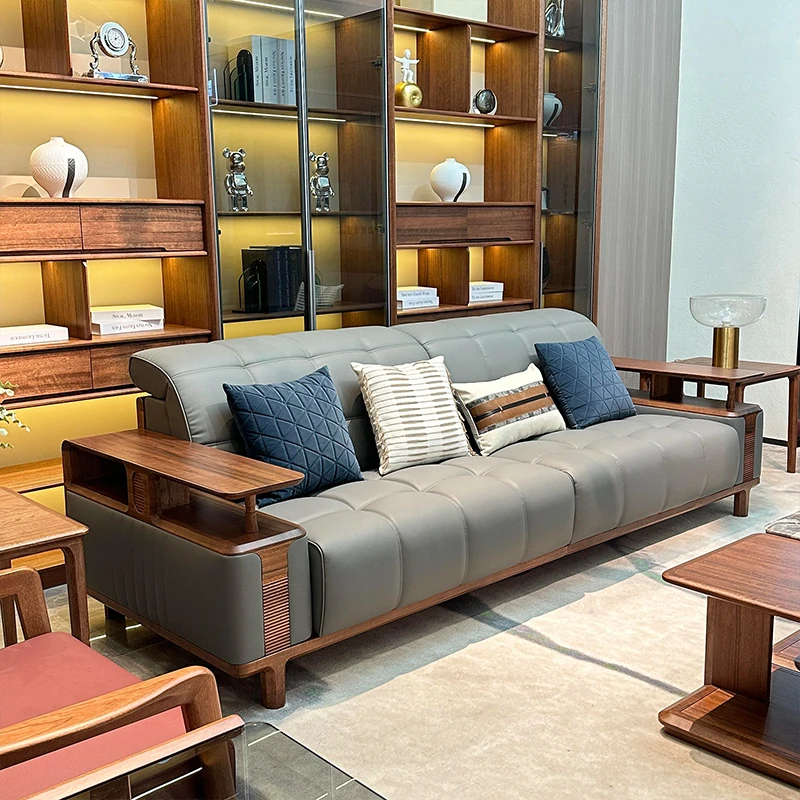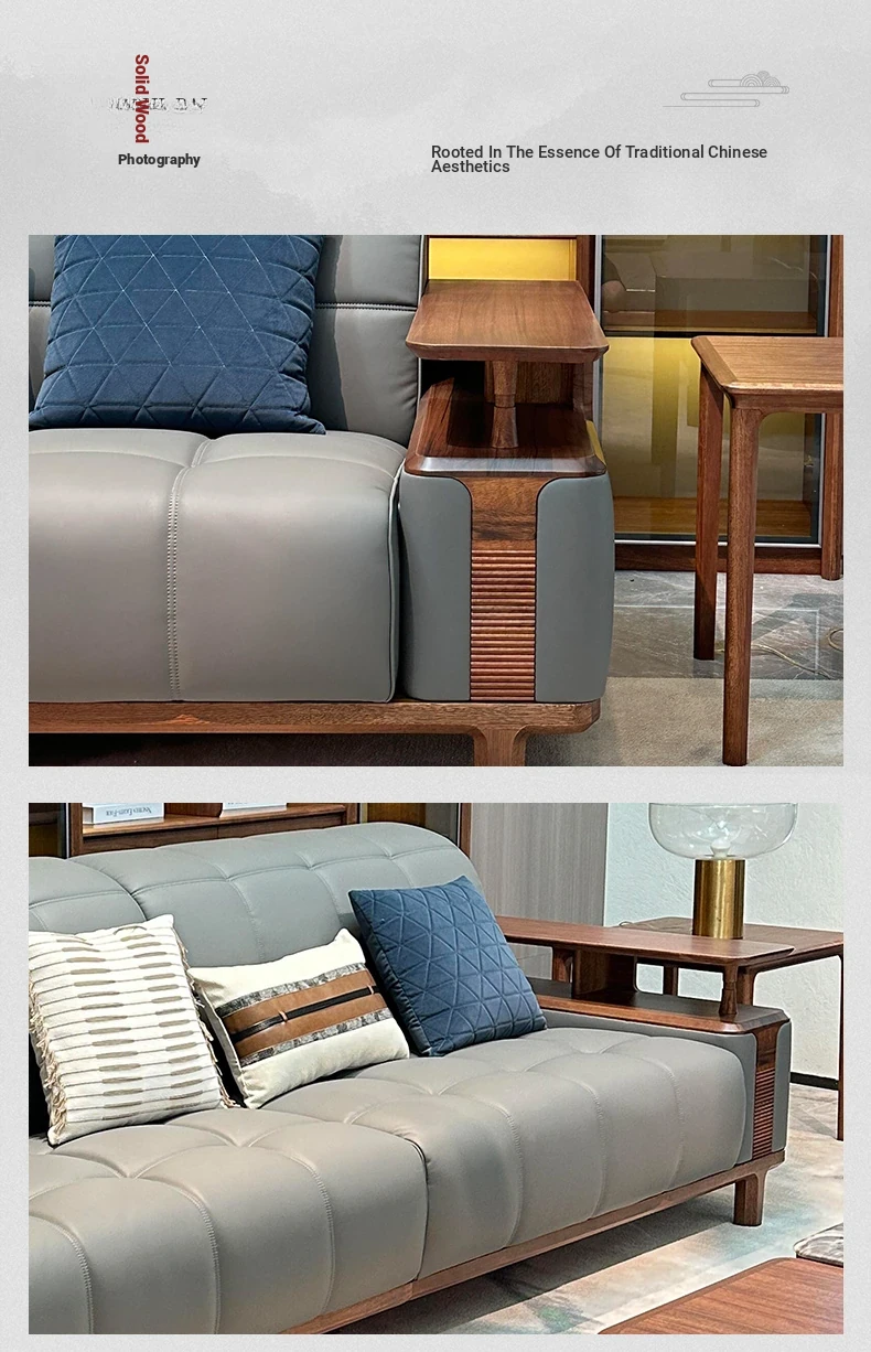 2025 New Minimalist Italian Solid Wood Sofa - Walnut Luxury Genuine Leather Sofa for Small Spaces, Perfect for 3-4 People Living Room