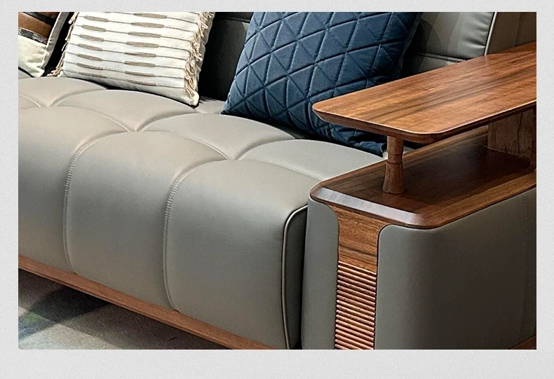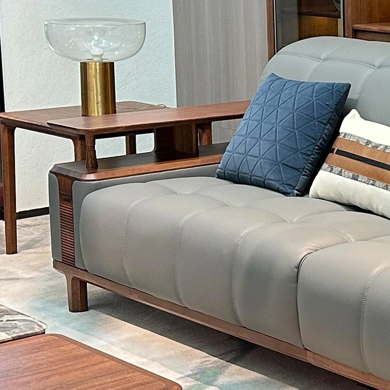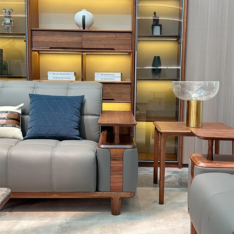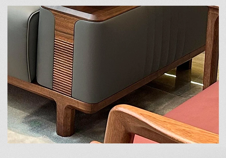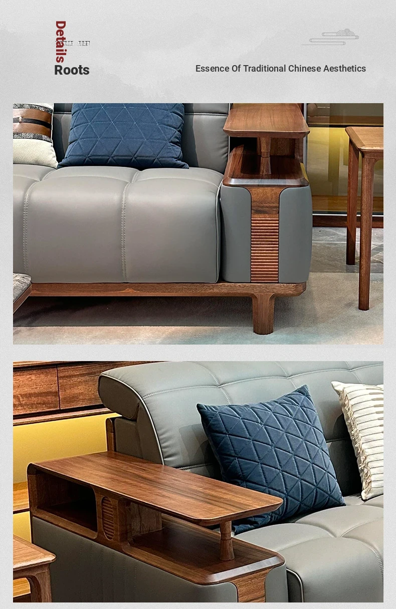 2025 New Minimalist Italian Solid Wood Sofa - Walnut Luxury Genuine Leather Sofa for Small Spaces, Perfect for 3-4 People Living Room