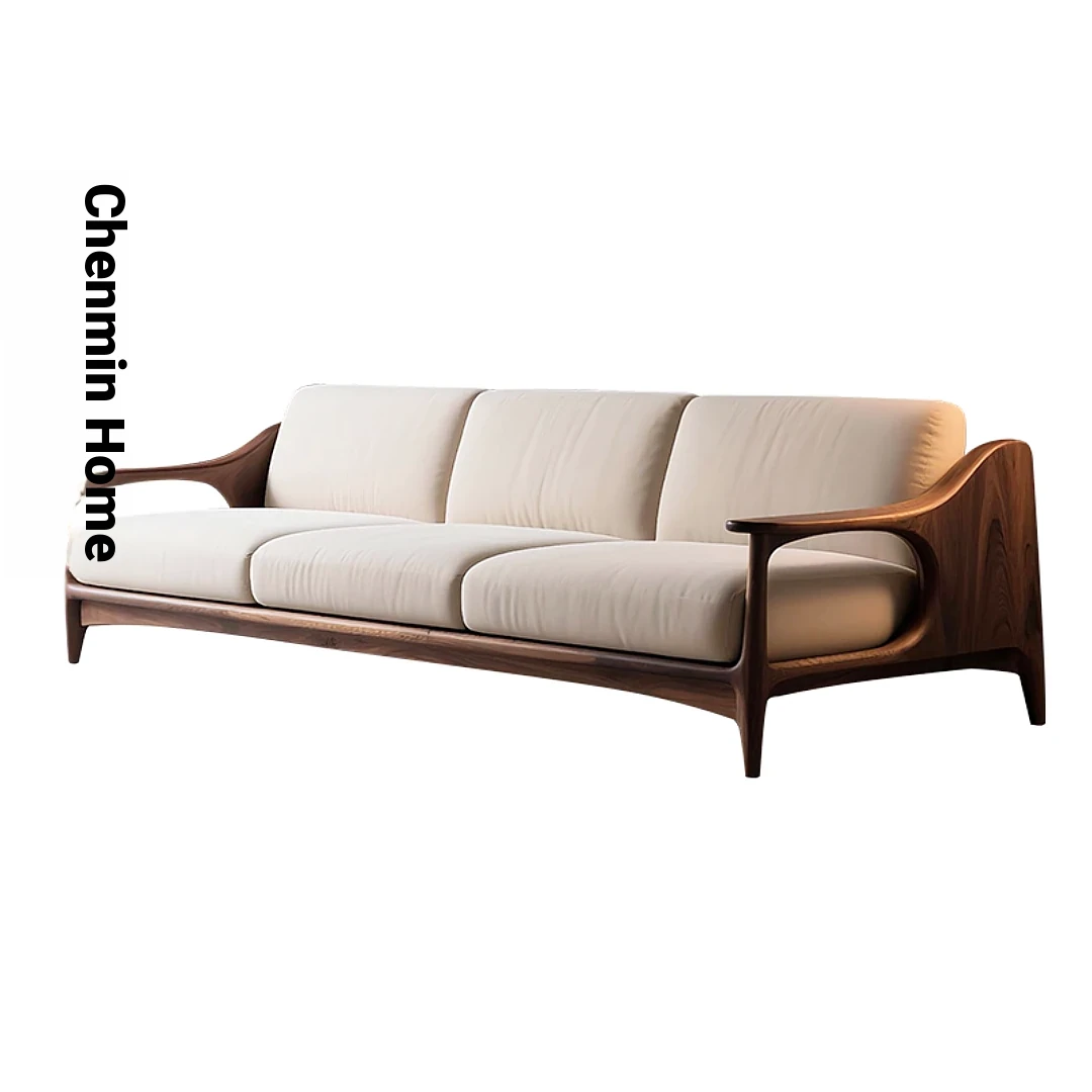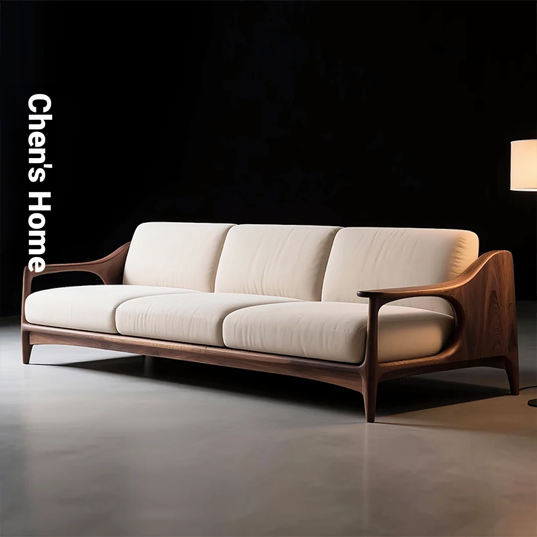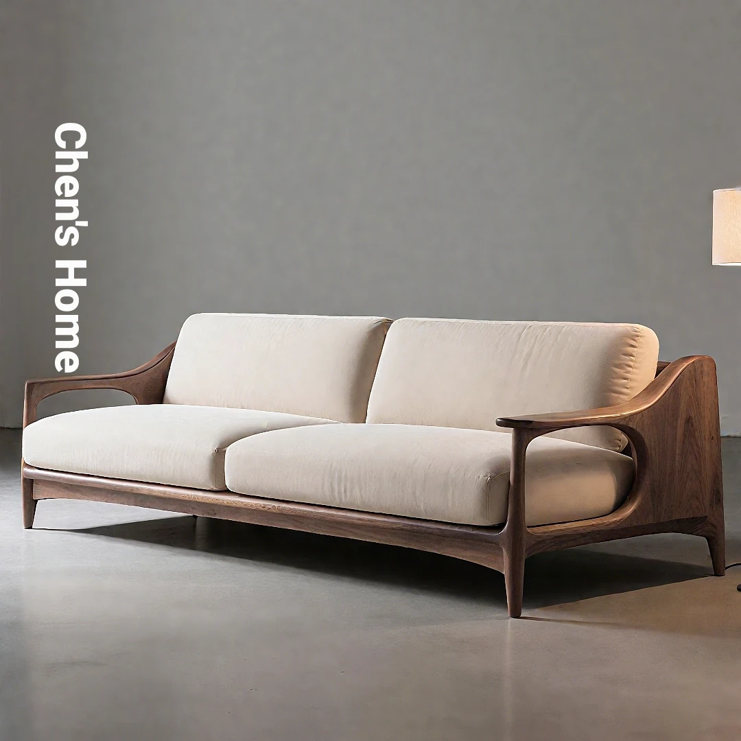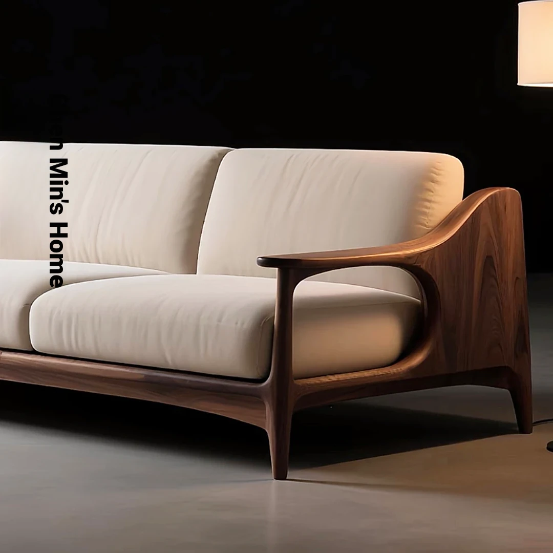 2025 New Stylish Chinese Living Room Sofa - North American Black Walnut Wood, Solid Wood Reception Sofa for Office Meetings and Discussions