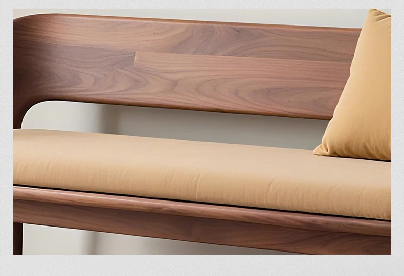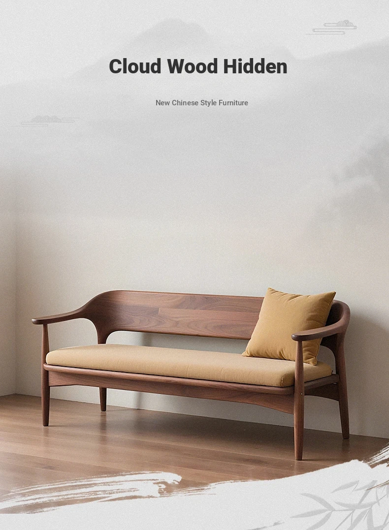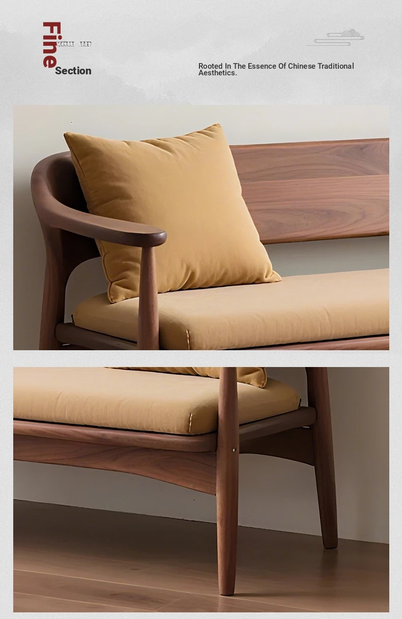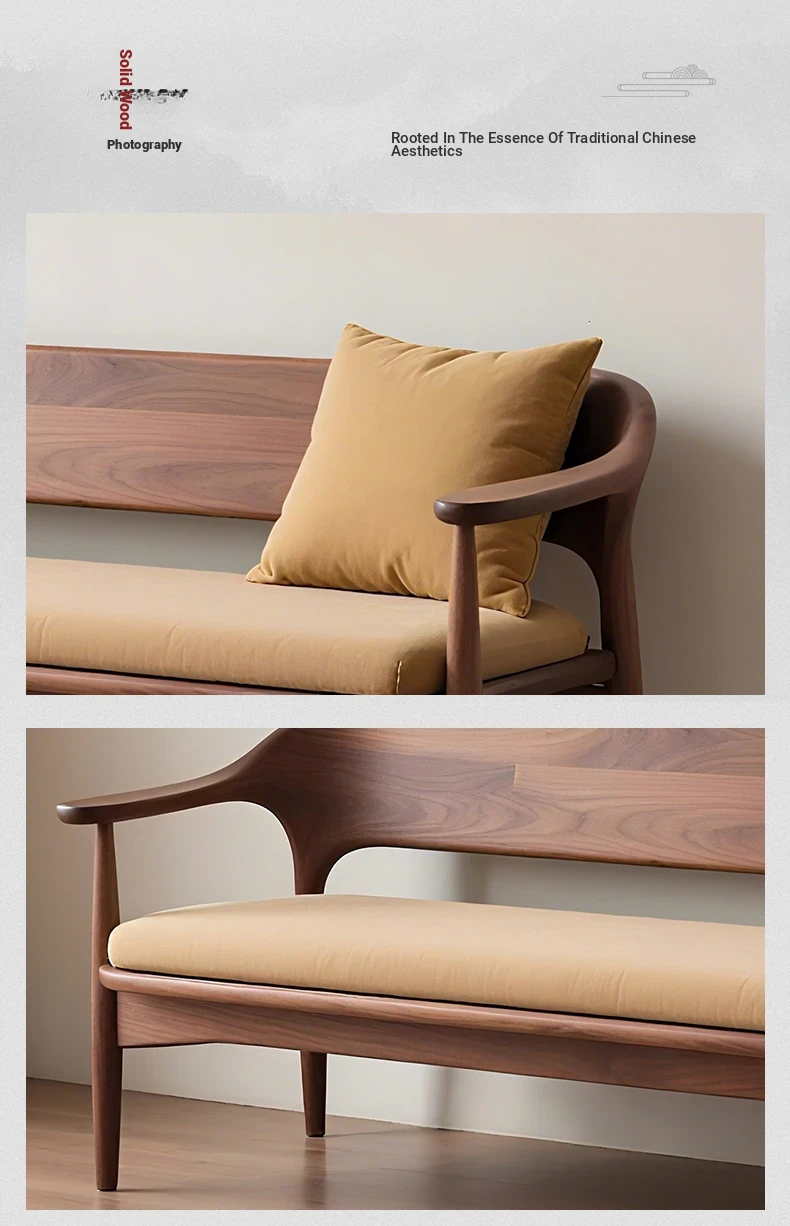 2025 New Vintage Solid Wood Sofa for Small Living Rooms - Stylish Black Walnut Double and Triple Seat Sofa