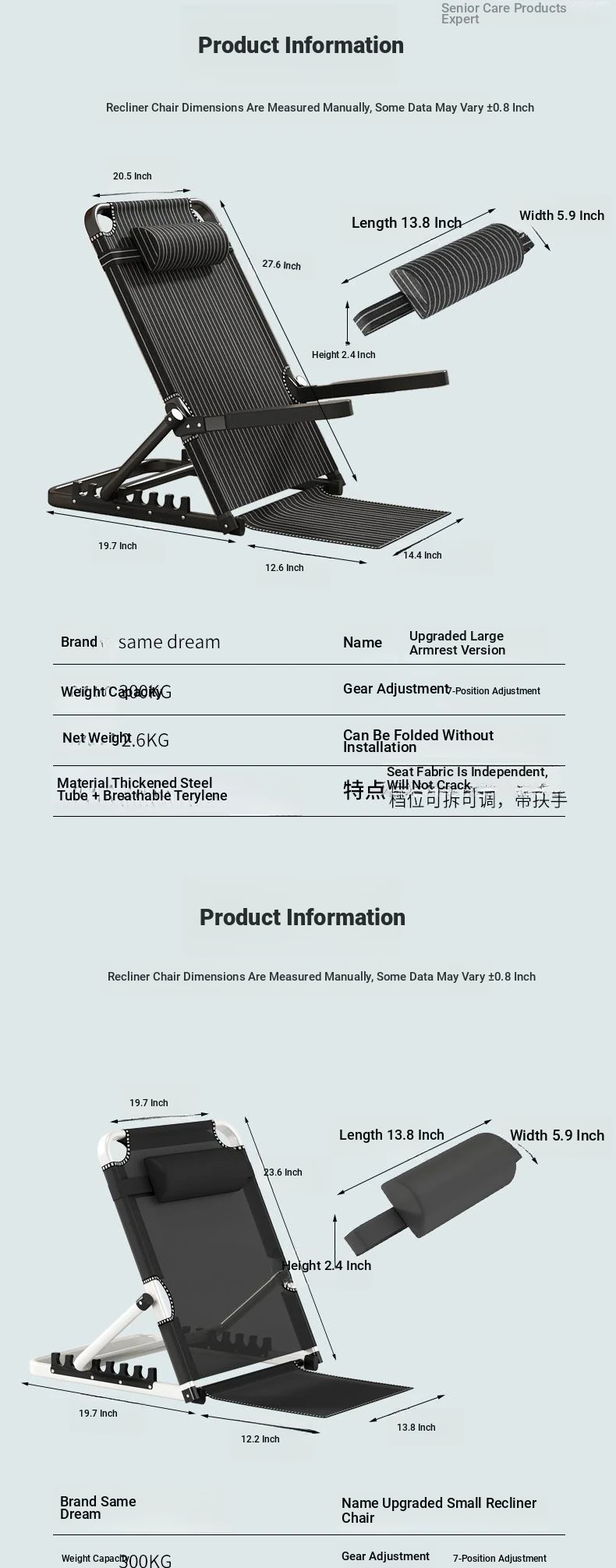 Adjustable Folding Backrest Chair for Elderly - Bedside Support and Gaming Lounger, Perfect Sofa Cushion for Comfort and Relaxation in Bed