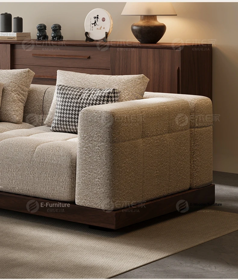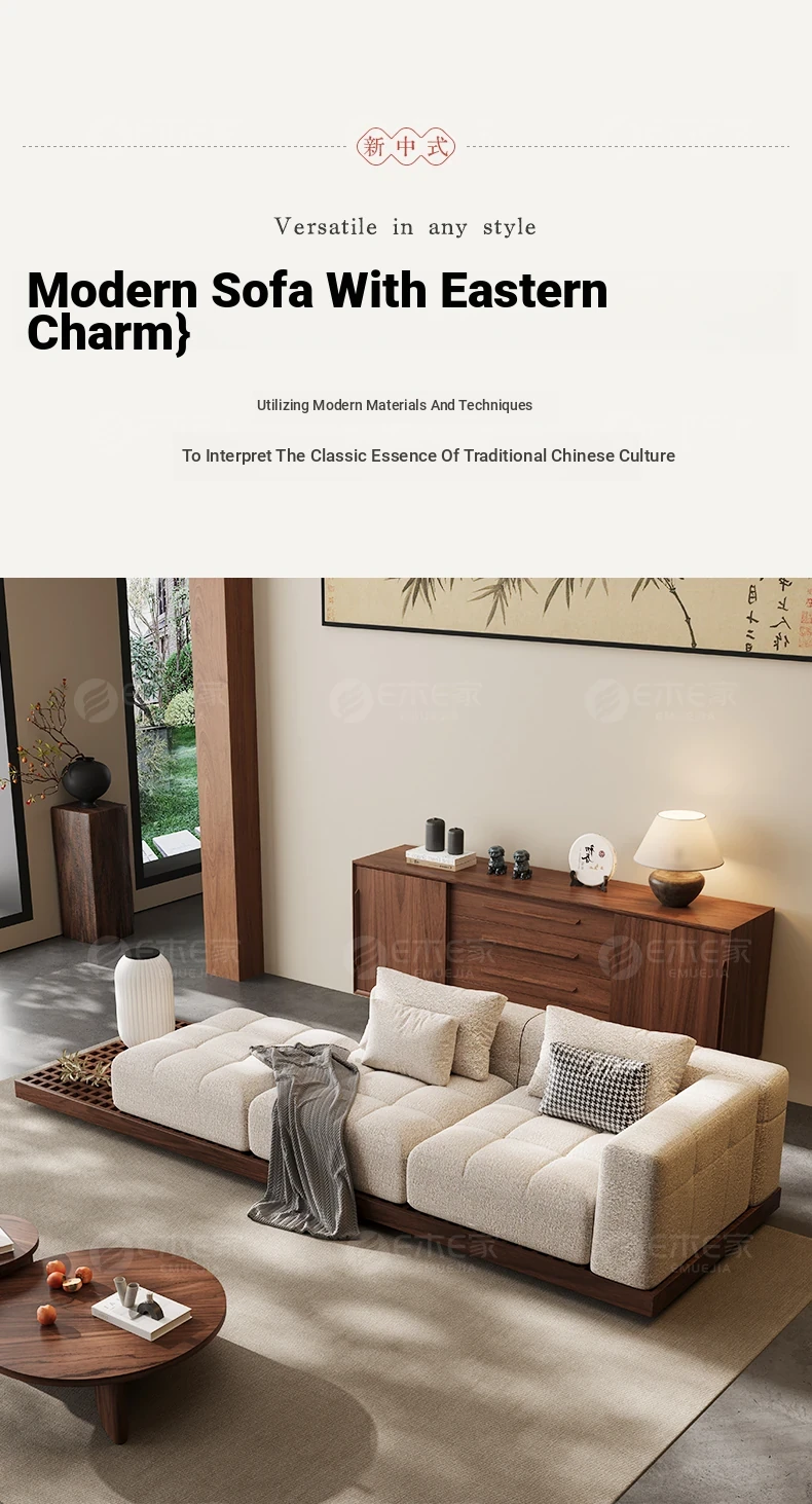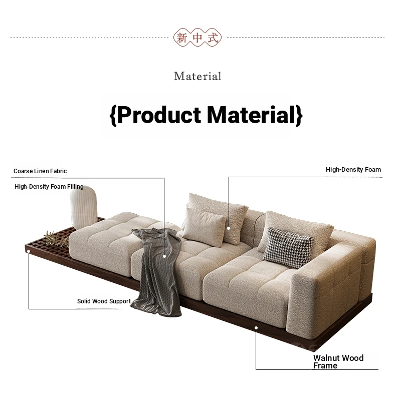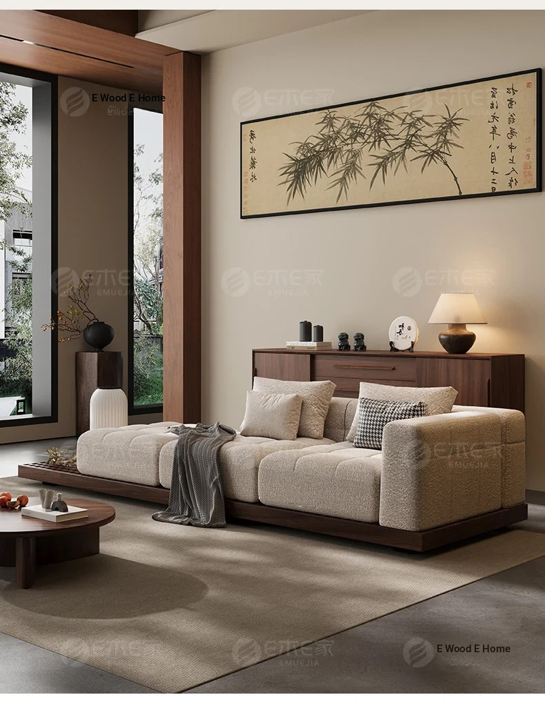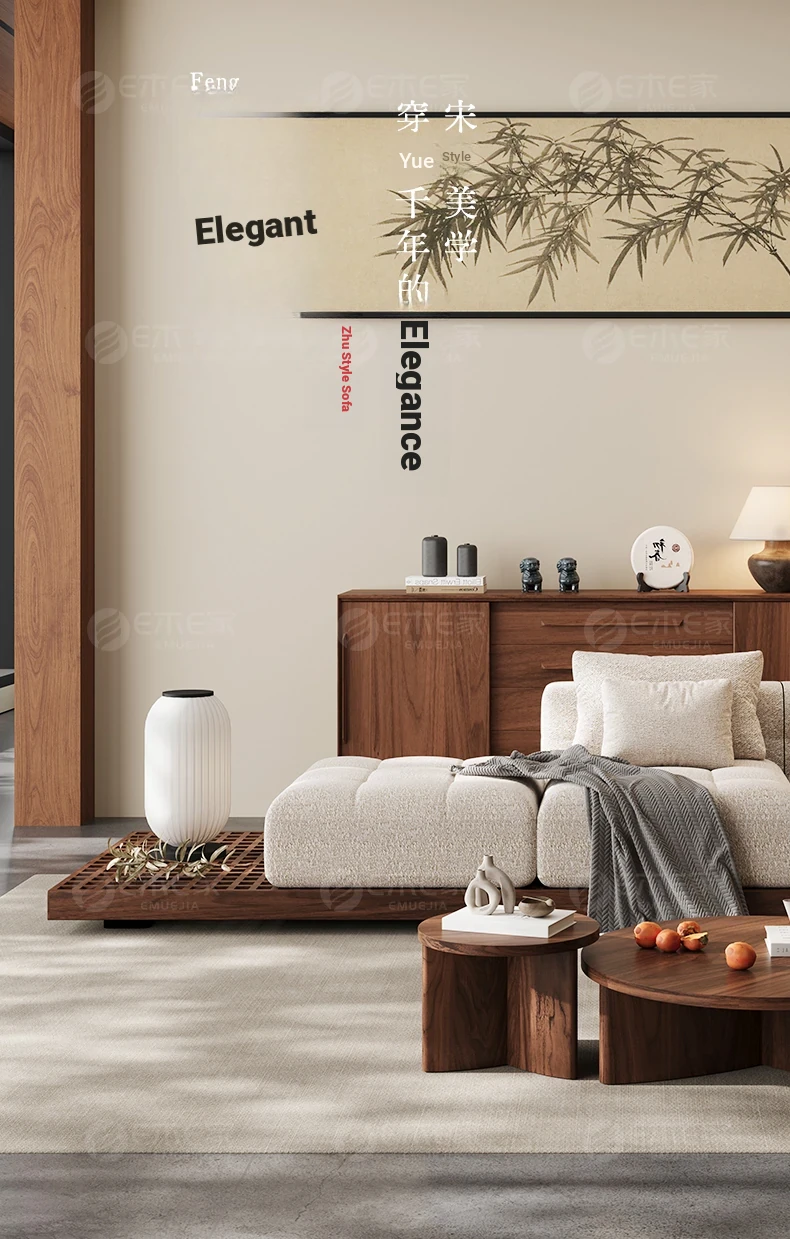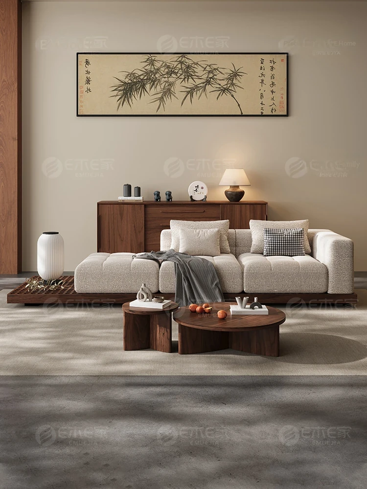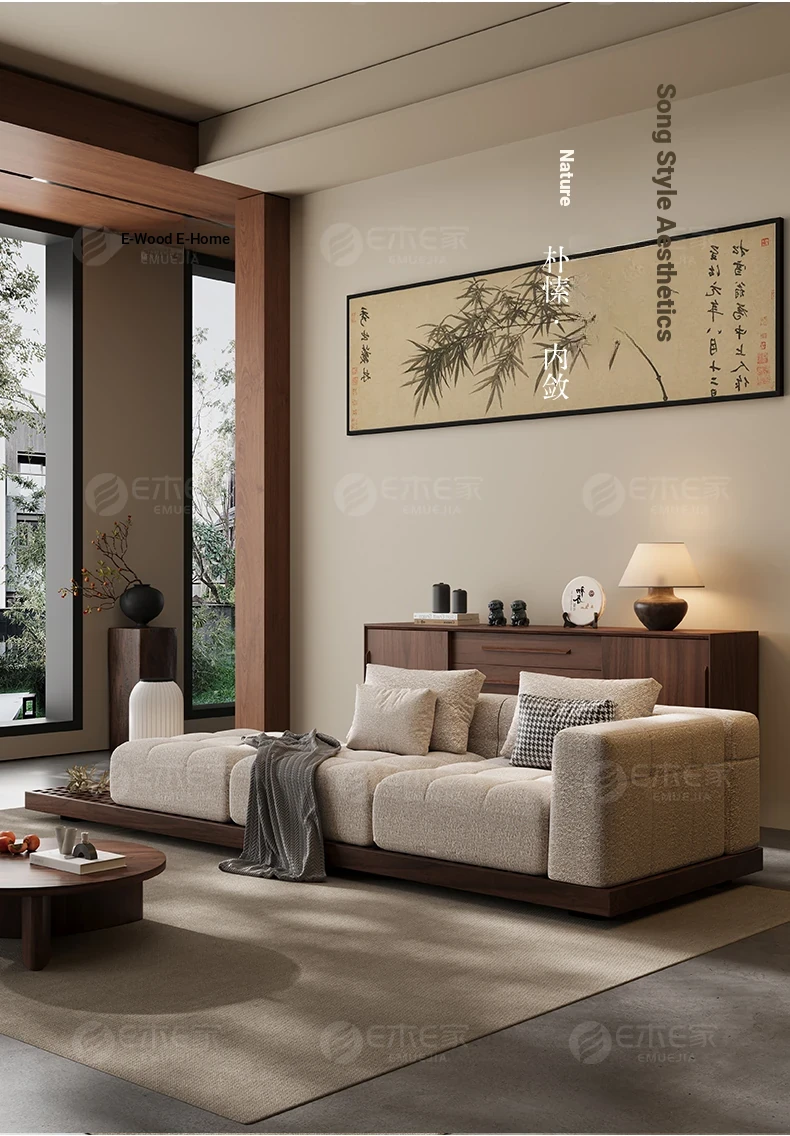 Black Walnut Solid Wood Sofa - New Chinese Style with Song Dynasty Aesthetics, Cotton and Linen Fabric, Perfect for Small Spaces, 2025 New Model