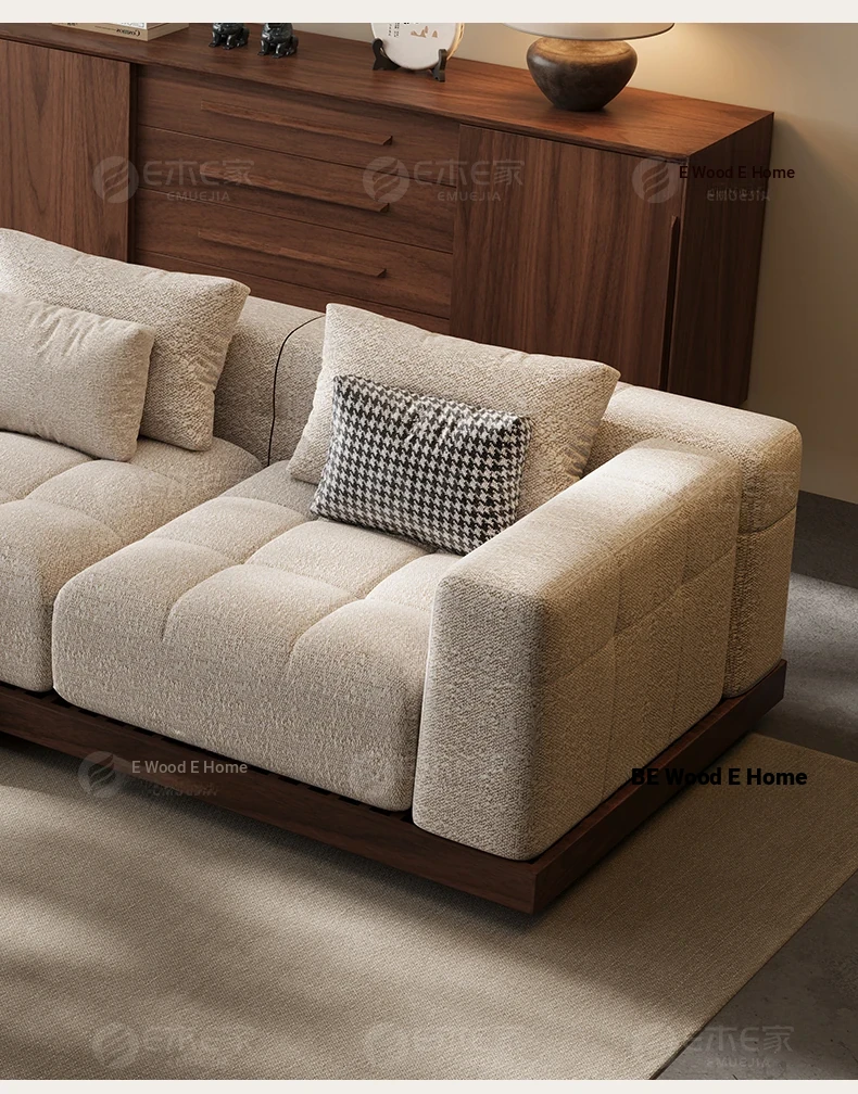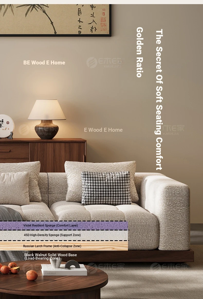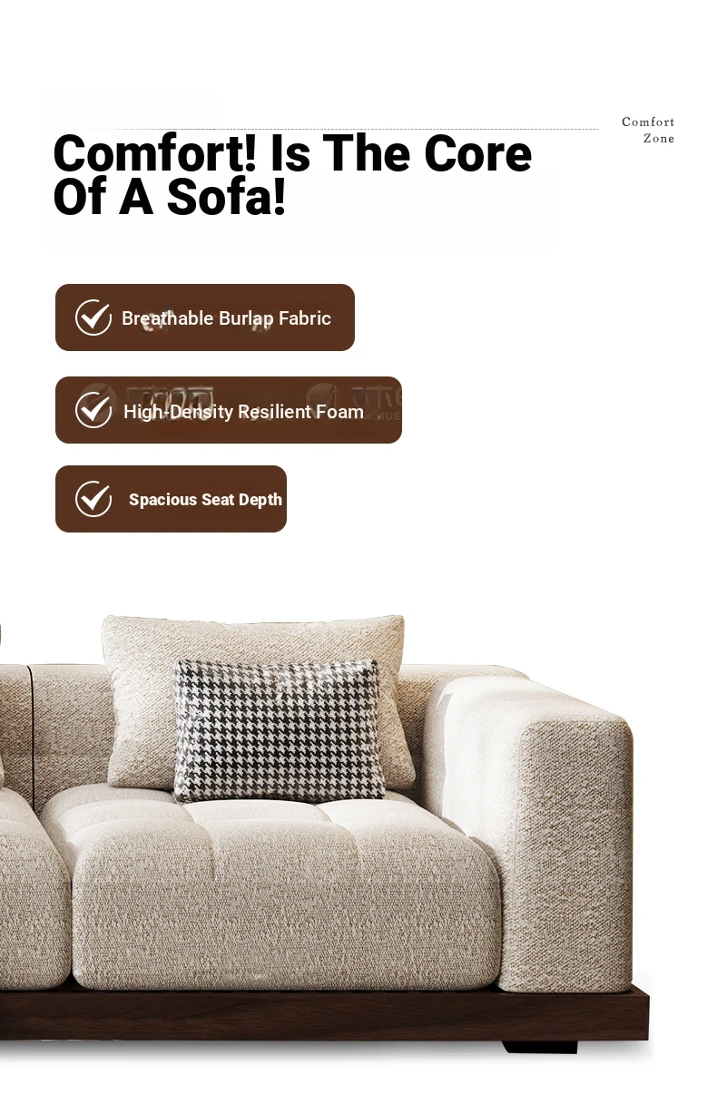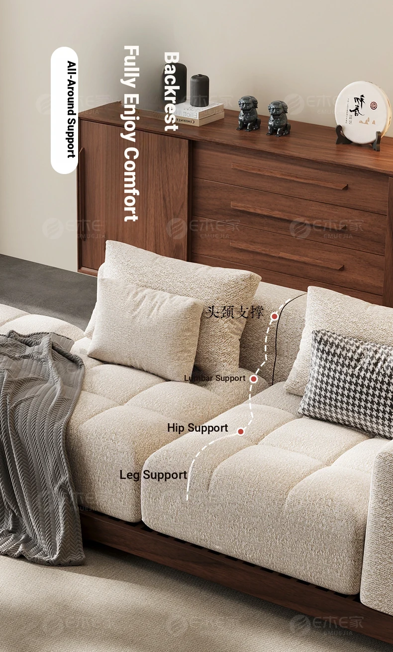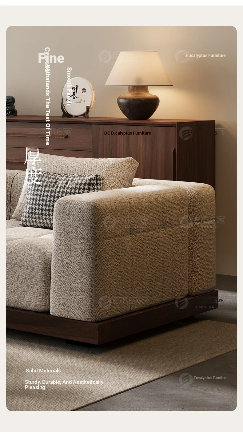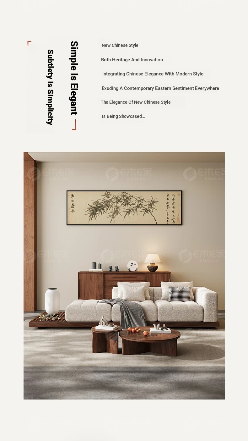 Black Walnut Solid Wood Sofa - New Chinese Style with Song Dynasty Aesthetics, Cotton and Linen Fabric, Perfect for Small Spaces, 2025 New Model