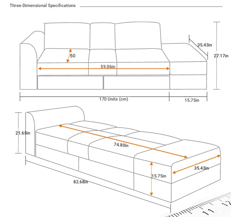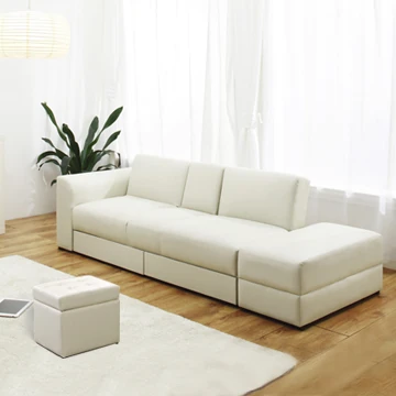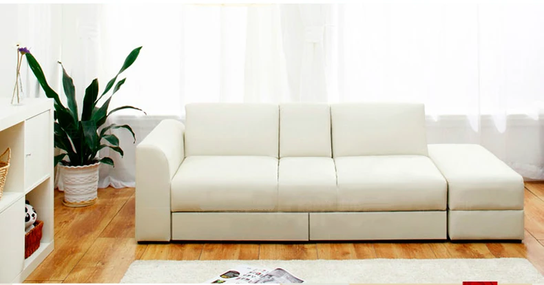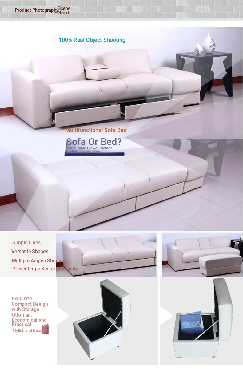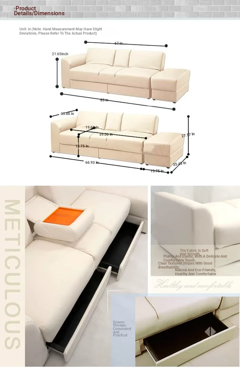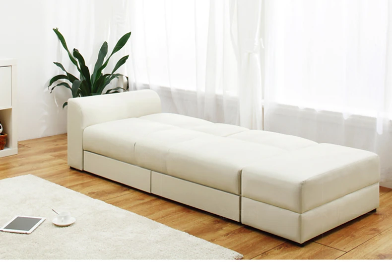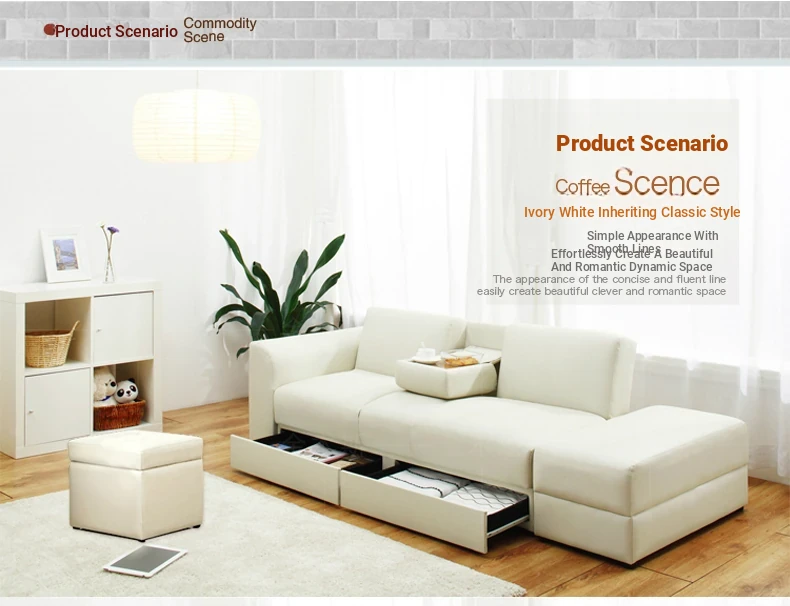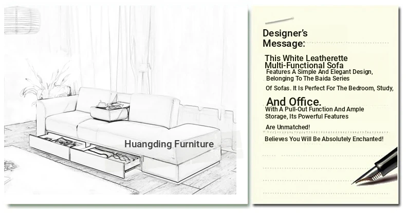 Chinese Style Faux Leather Foldable Sofa Bed with Drawer Ottoman and Coffee Table Set - Perfect for Small Spaces, Free Shipping!