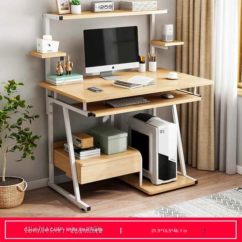 Compact Desktop Computer Desk with Printer Stand and Keyboard Tray – Ideal for Home Office and Study Use, Simplified Design for Effortless Organization and Productivity