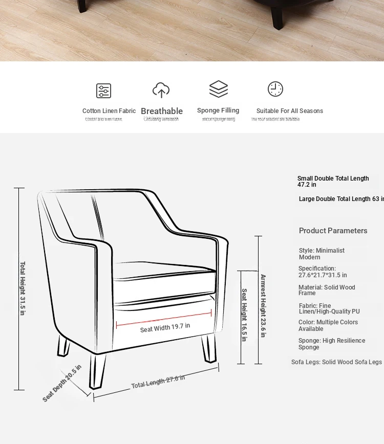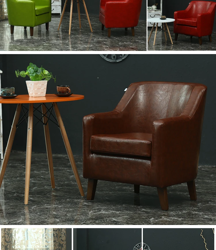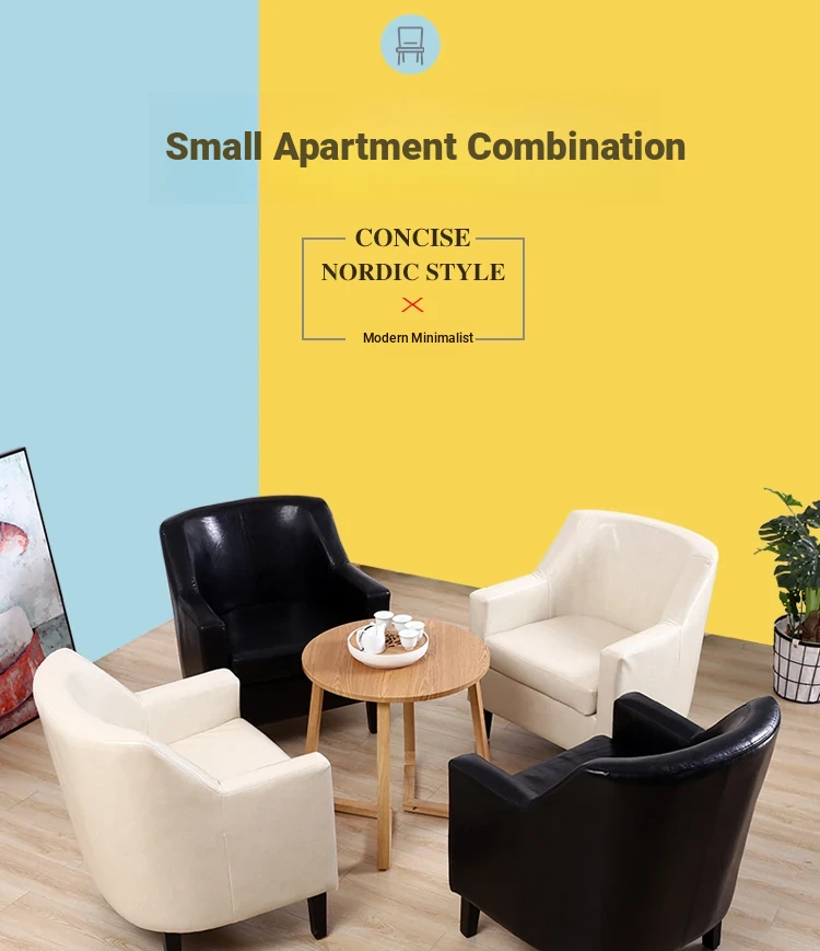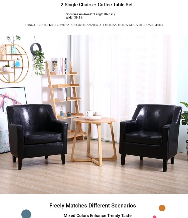 Compact Leather Single Sofa Chair Set for Balcony - Perfect for Small Spaces, Hotels, Bedrooms, Cafés, and Apartments - Stylish Solid Wood Design