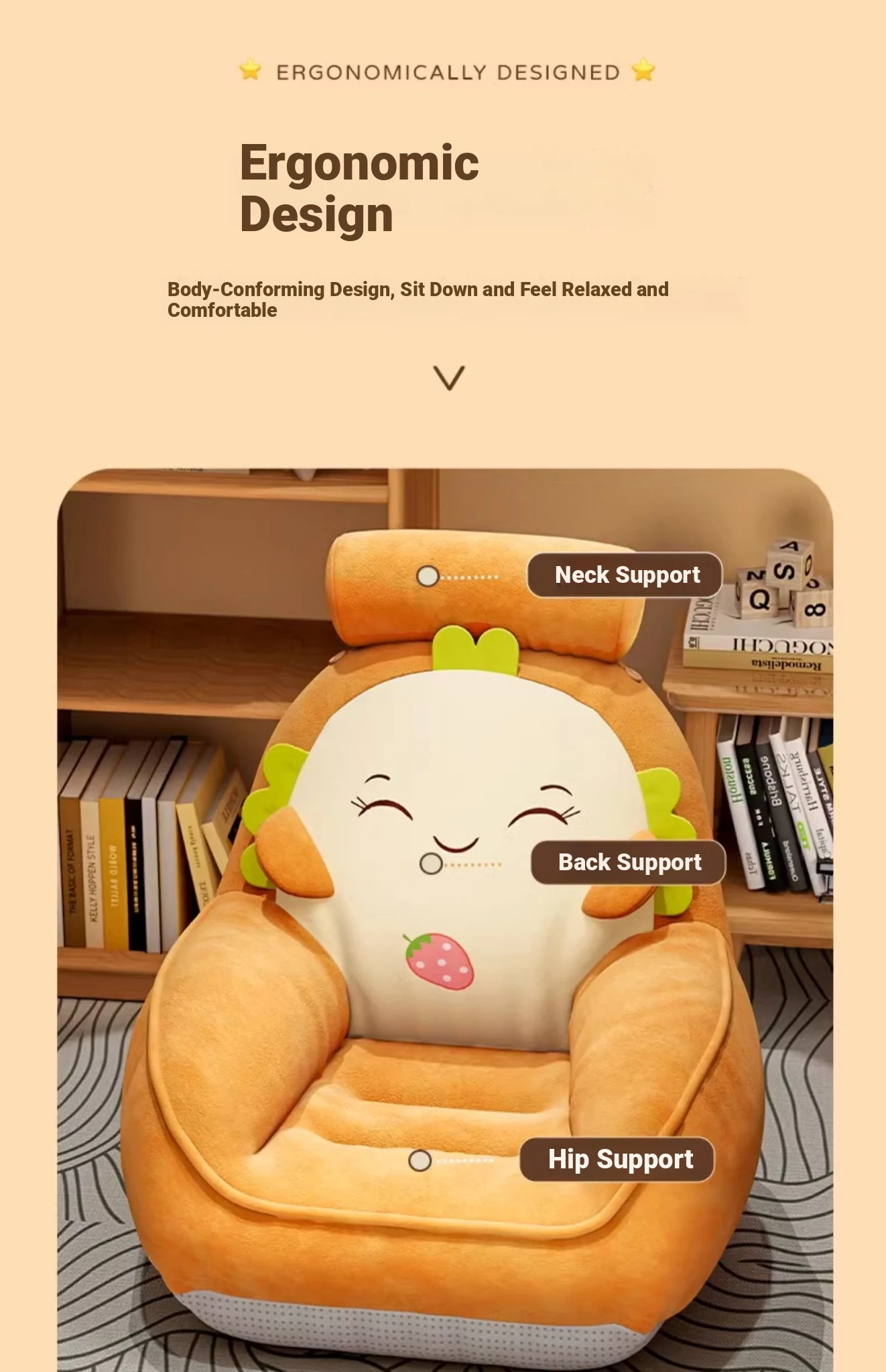 Cozy Cartoon Lazy Sofa Chair for Balcony - Perfect for Home Relaxation, Bedroom Reading Nook, or Kids' Playroom - Comfortable Cushion and Backrest Design