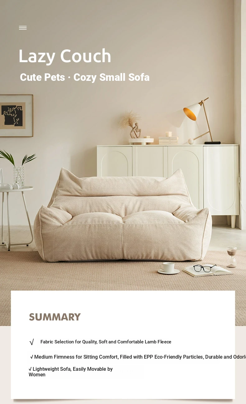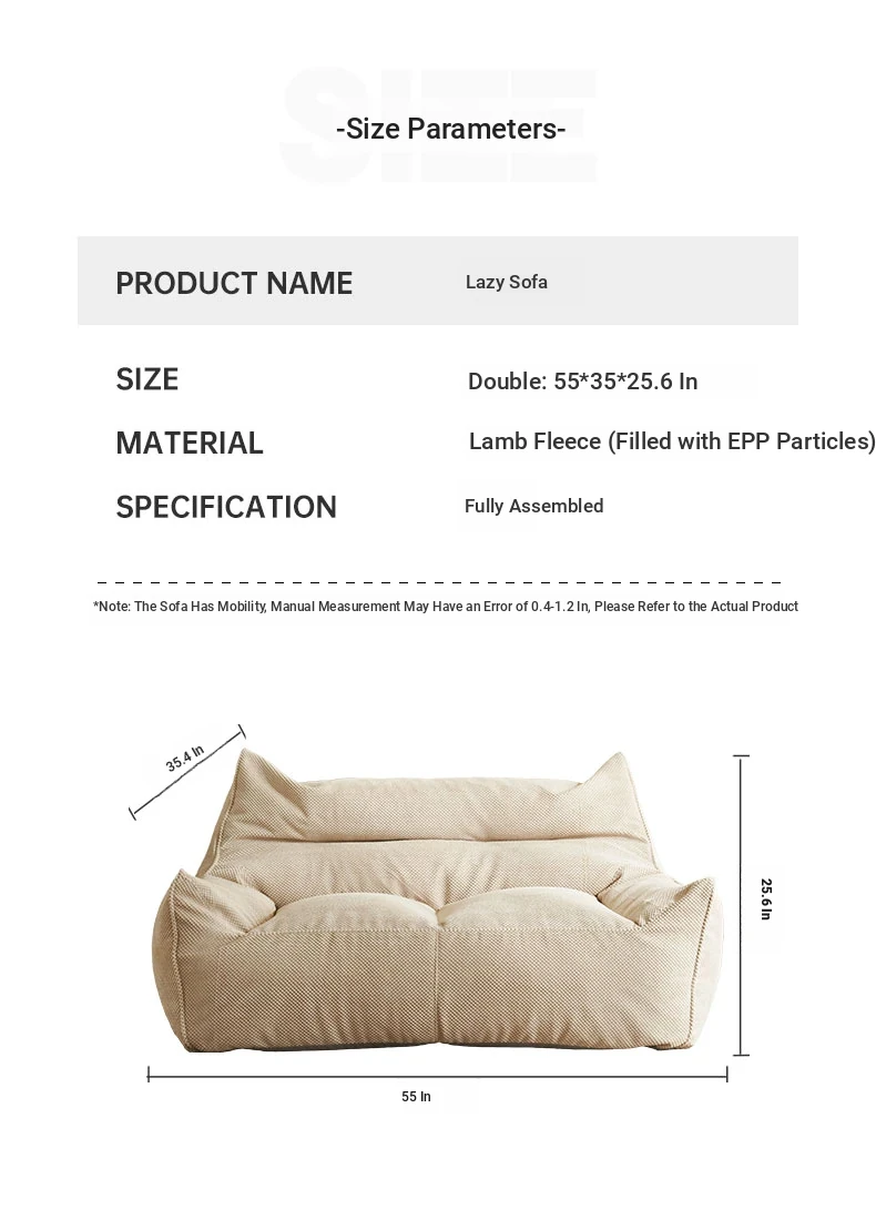 Cozy Double Lazy Sofa Chair – Trendy Ins-Style Single Tatami Bean Bag with Lamb Fleece for Home, Living Room, Bedroom, and Balcony Comfort