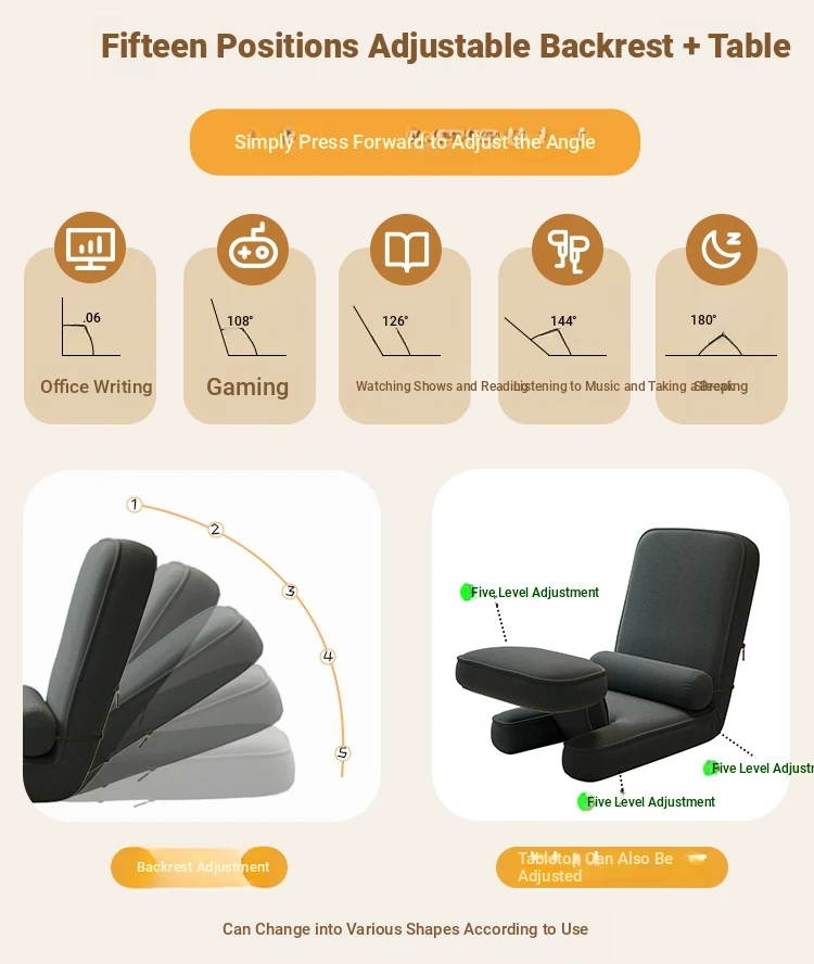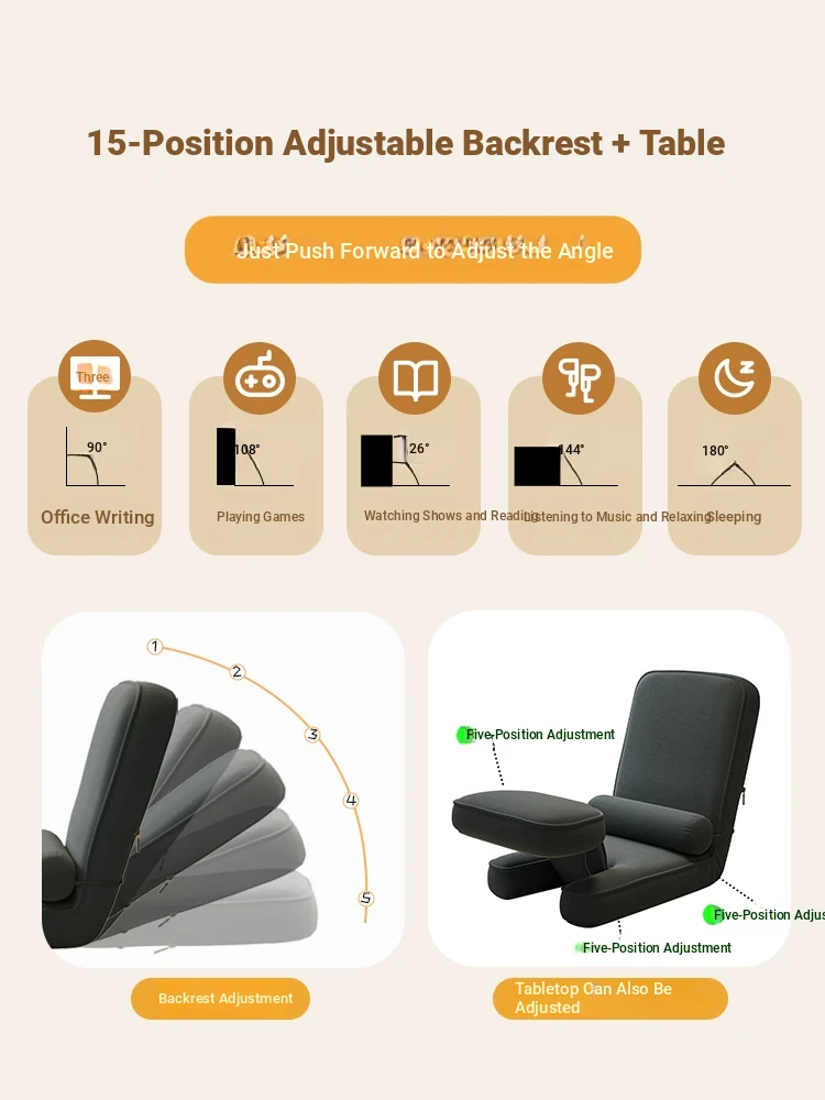 ❤[Upgrade luxury] adjustable backrest + table [multi-function tatami] Gray