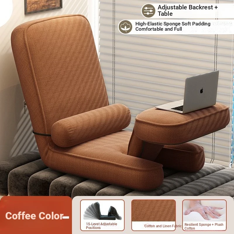 [Upgrade luxury] adjustable backrest + table [multi-function tatami] Brown