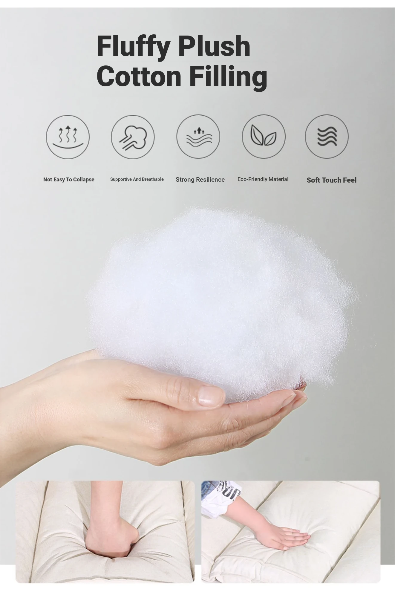 Custom Grade 78.74in Powder 2 Folding Pillows Detachable