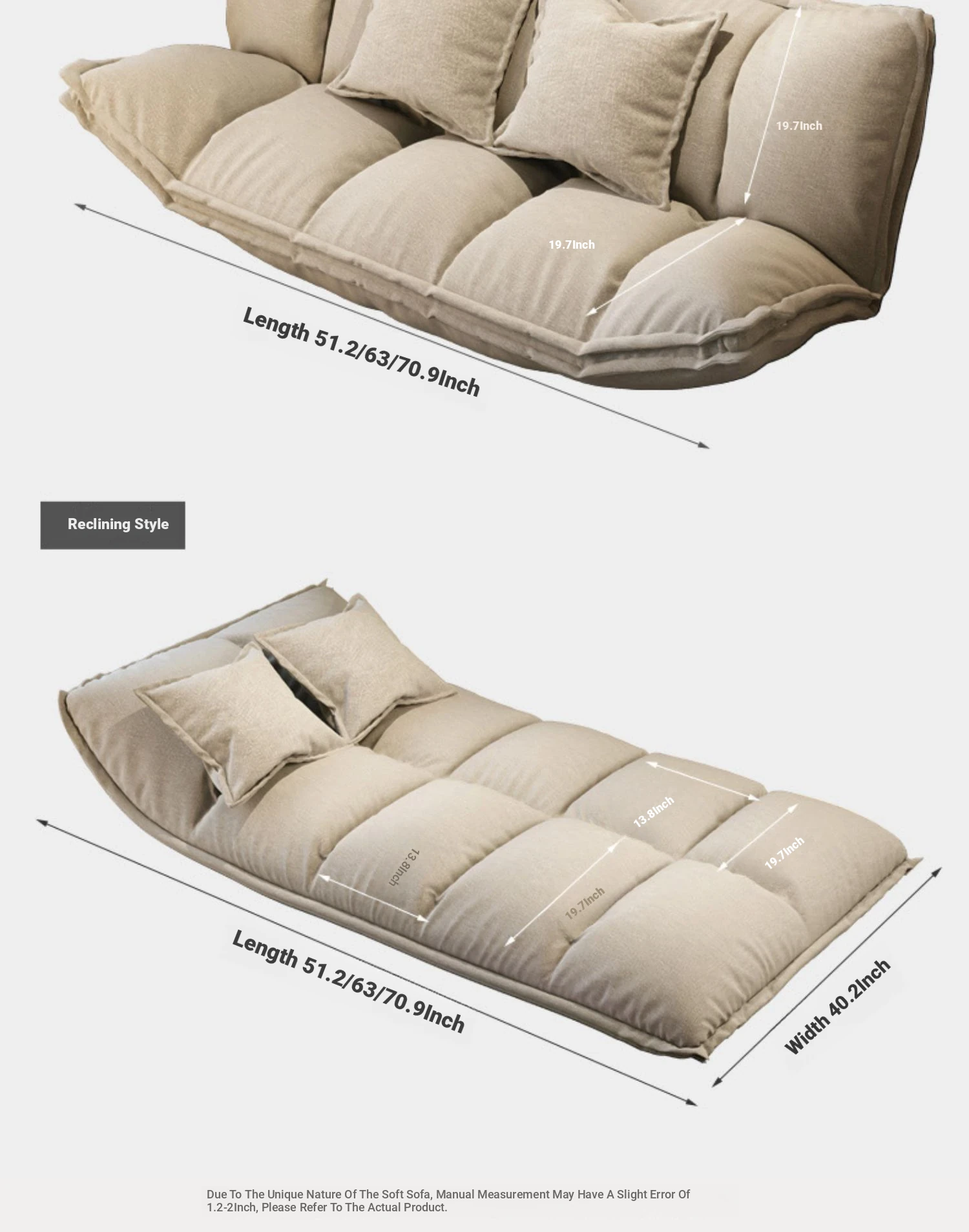 Upgrade 70.87in deep grey + 1 cushionable pillow