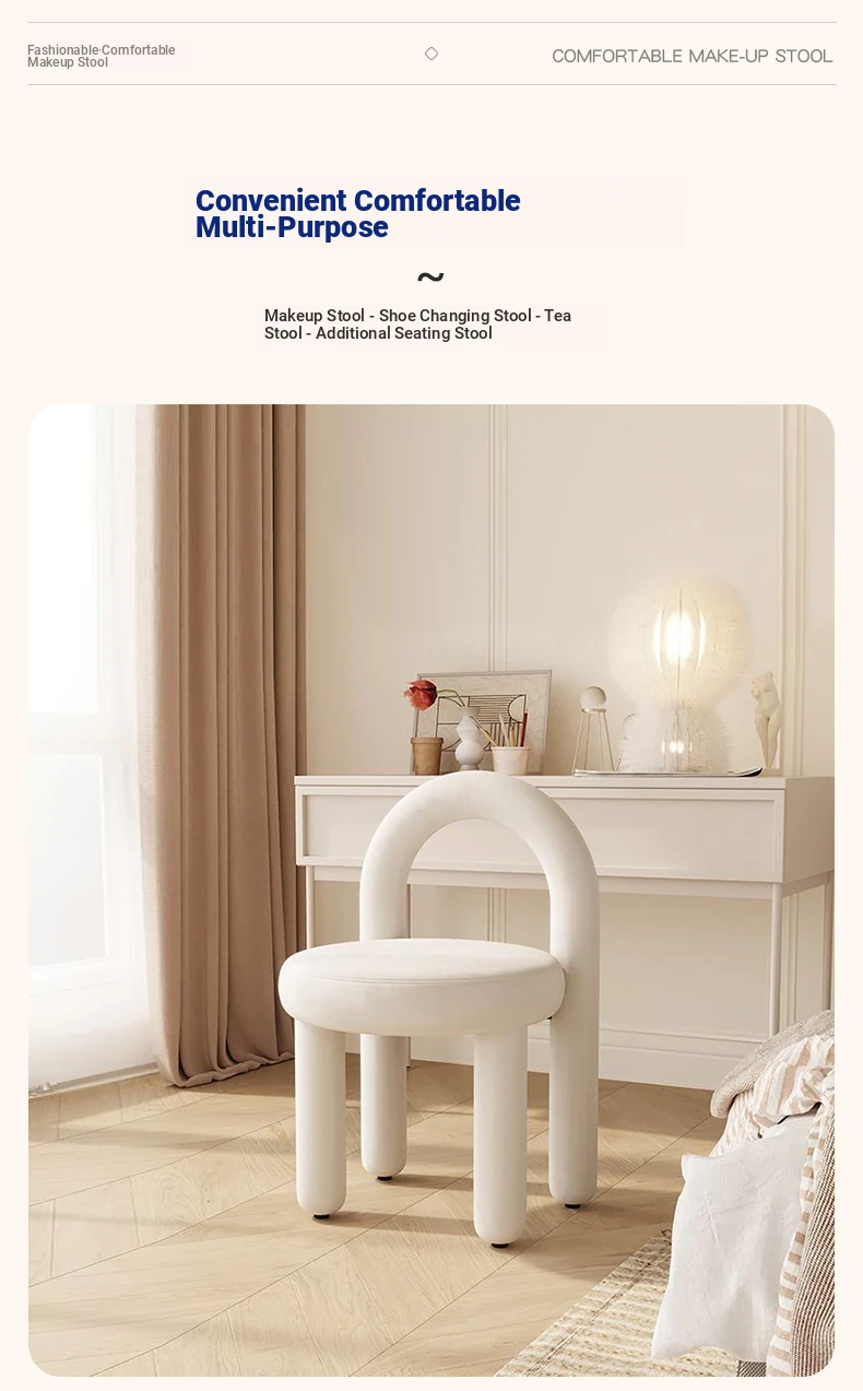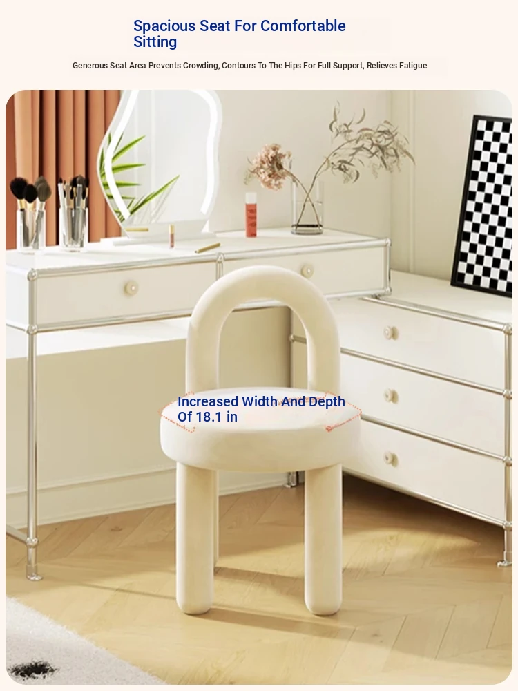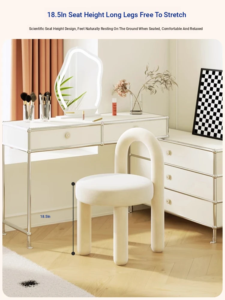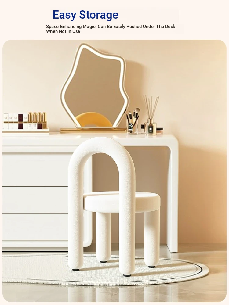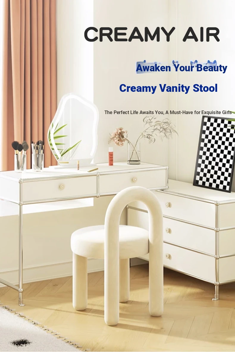 Creamy Vanity Stool for Girls' Bedrooms - Trendy Makeup Chair 2025 New Style Dressing Table Seat - Elegant and Cozy Design for Your Makeup Routine