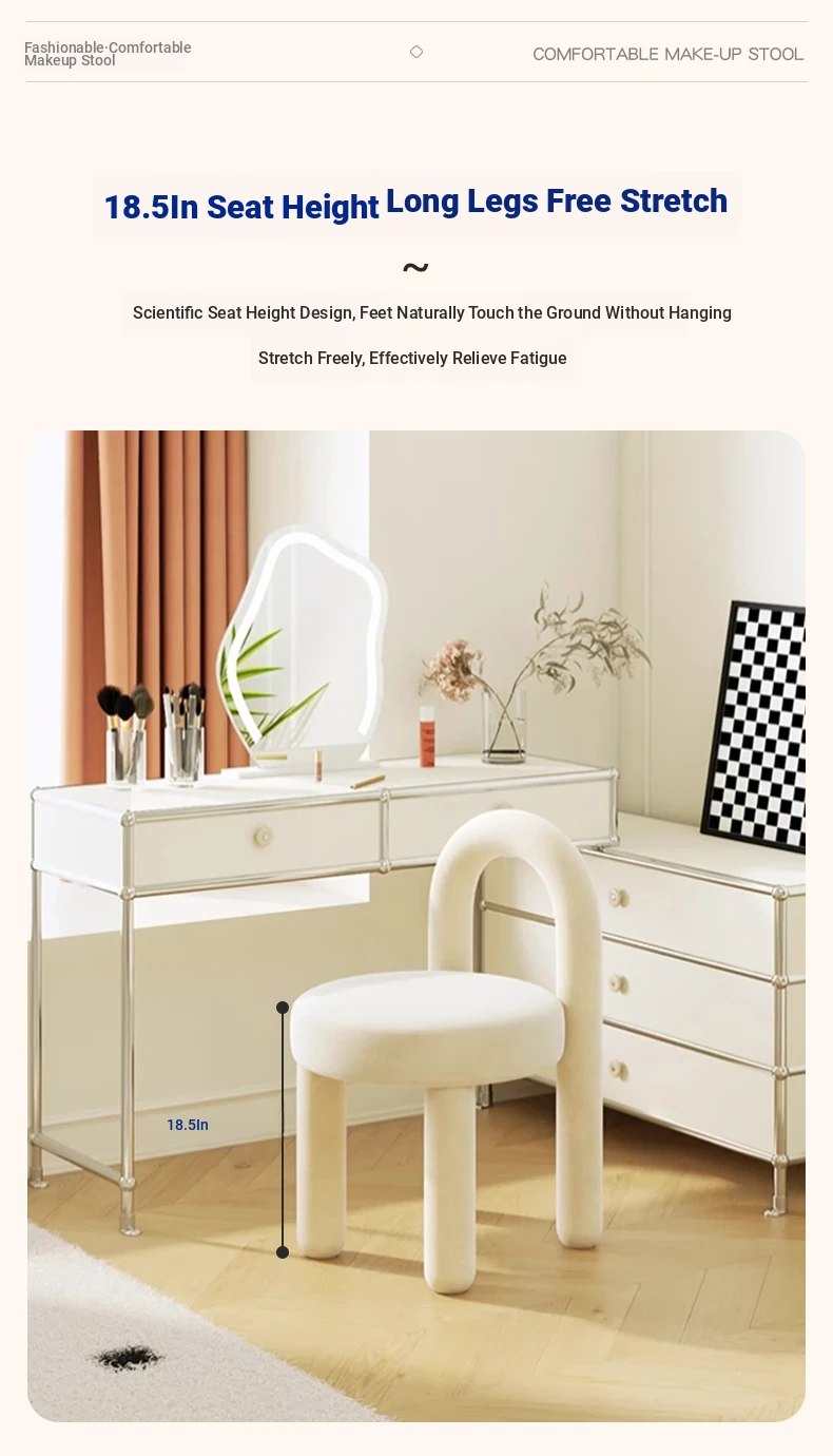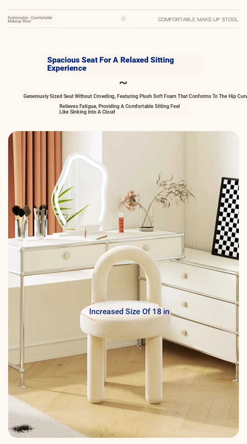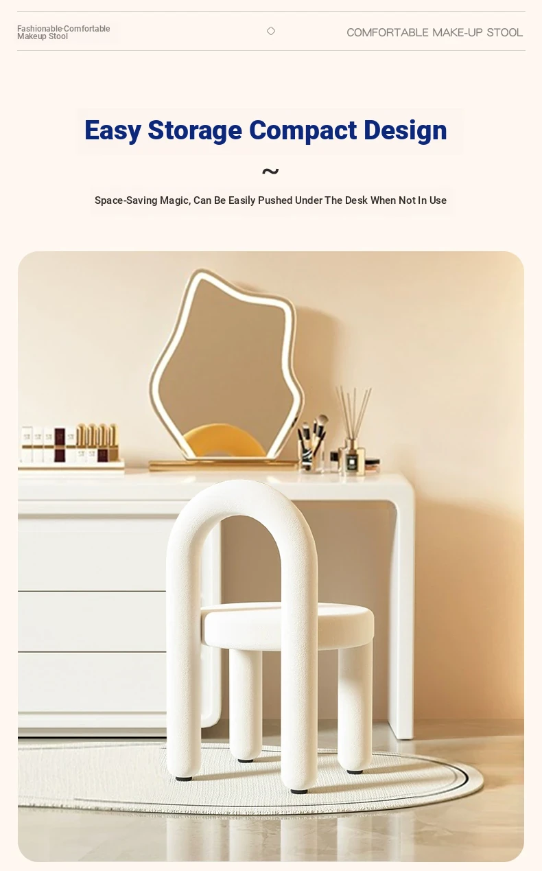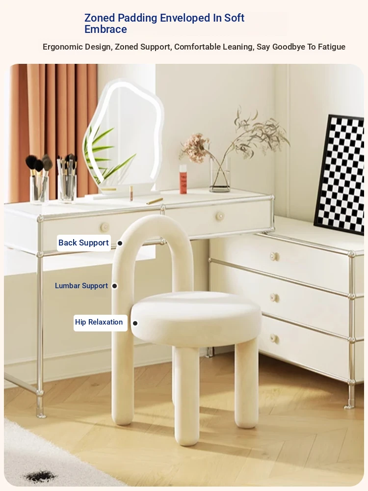 Creamy Vanity Stool for Girls' Bedrooms - Trendy Makeup Chair 2025 New Style Dressing Table Seat - Elegant and Cozy Design for Your Makeup Routine