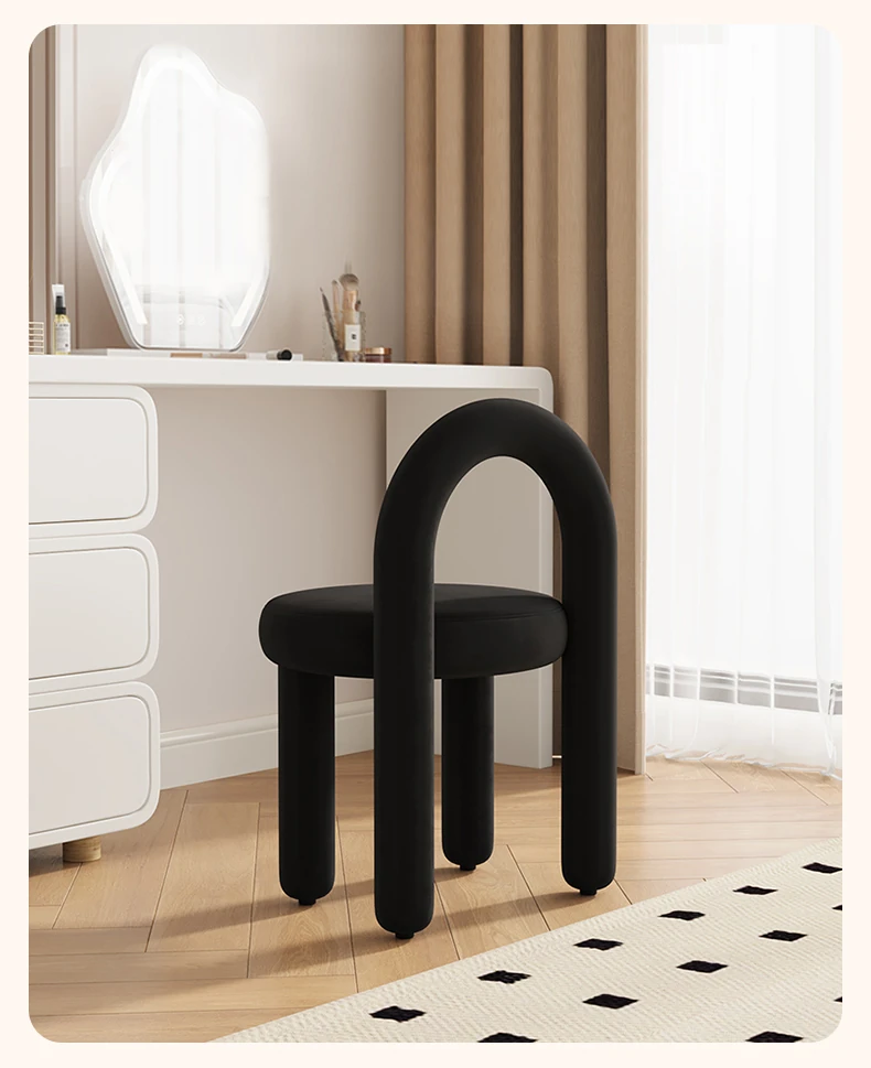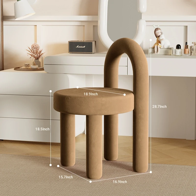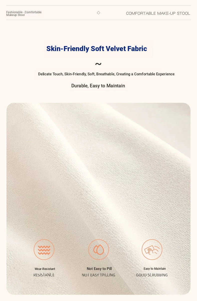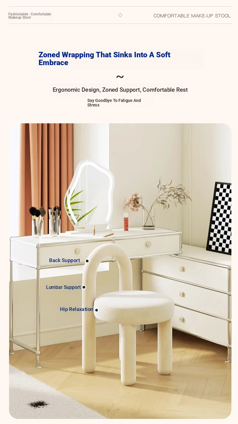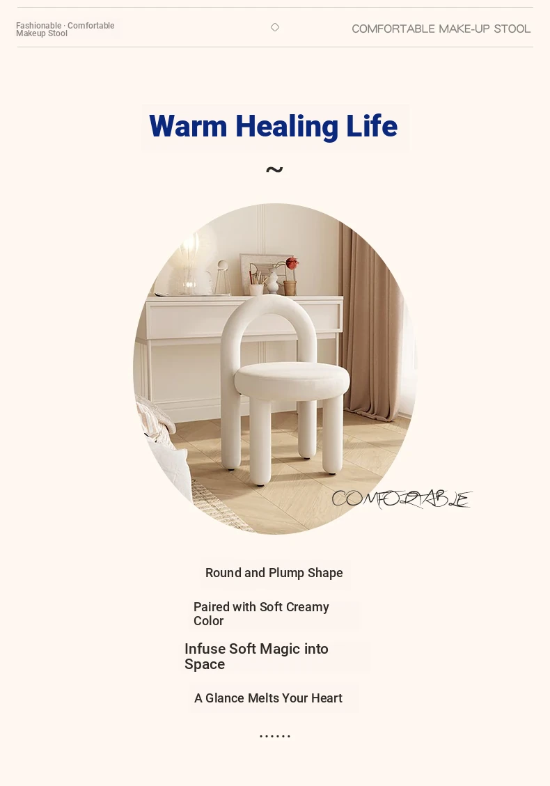Creamy Vanity Stool for Girls' Bedrooms - Trendy Makeup Chair 2025 New Style Dressing Table Seat - Elegant and Cozy Design for Your Makeup Routine