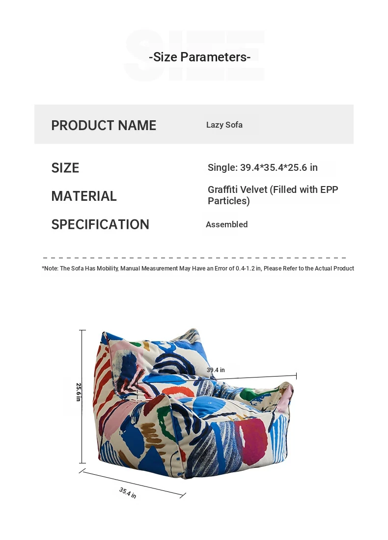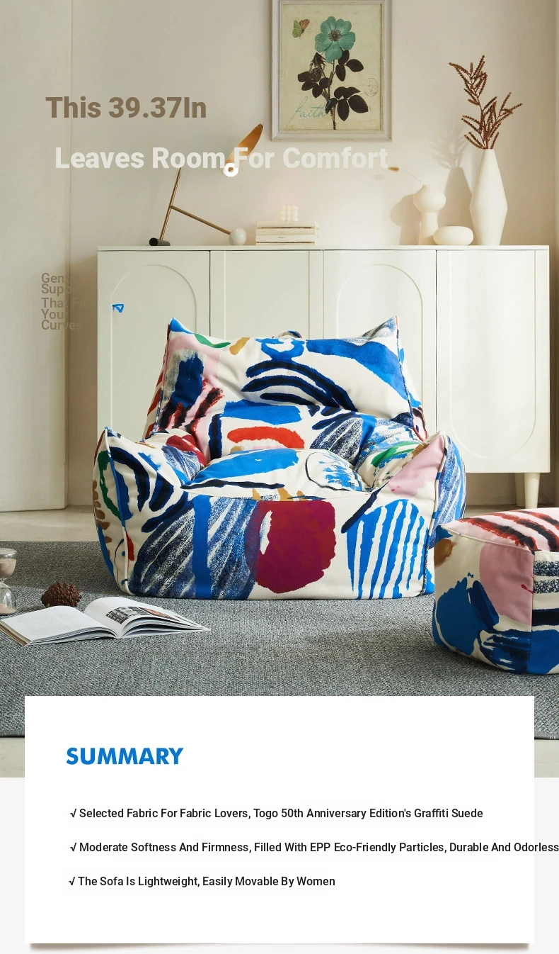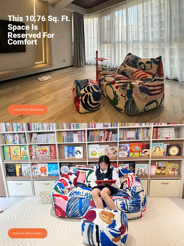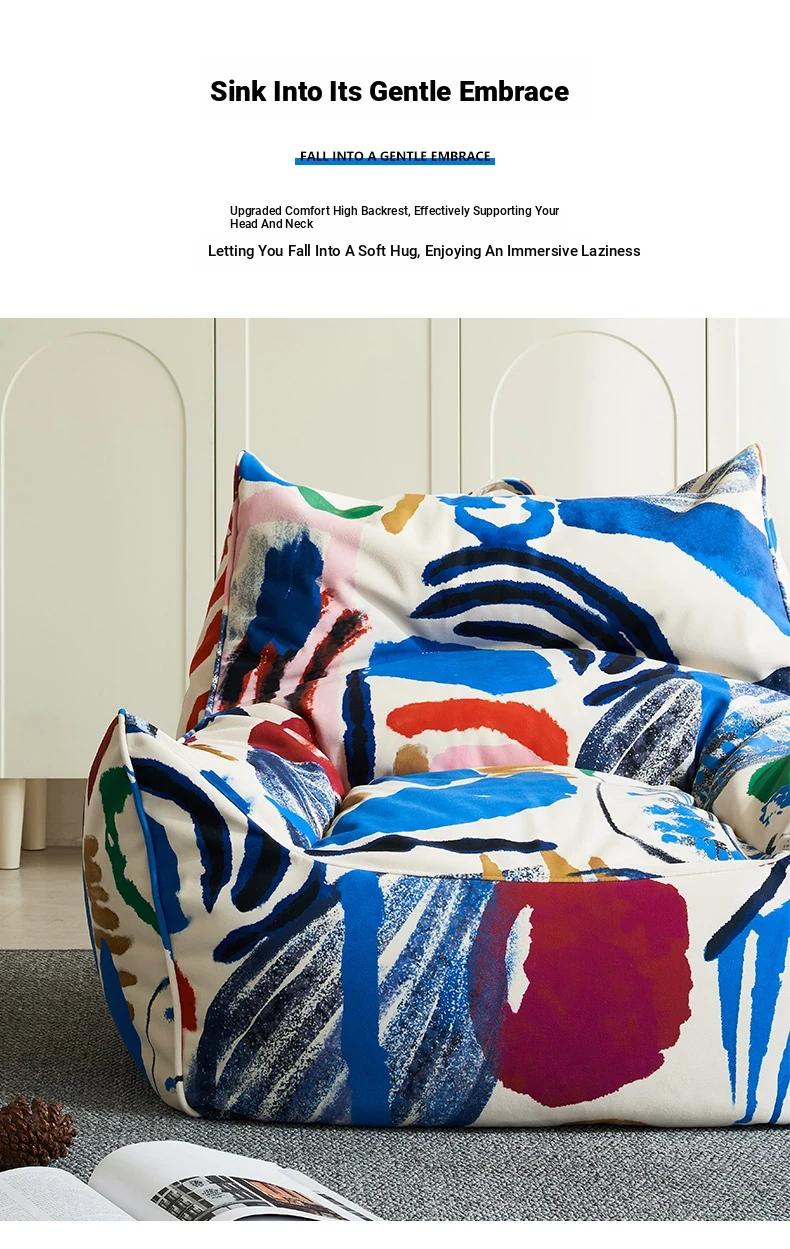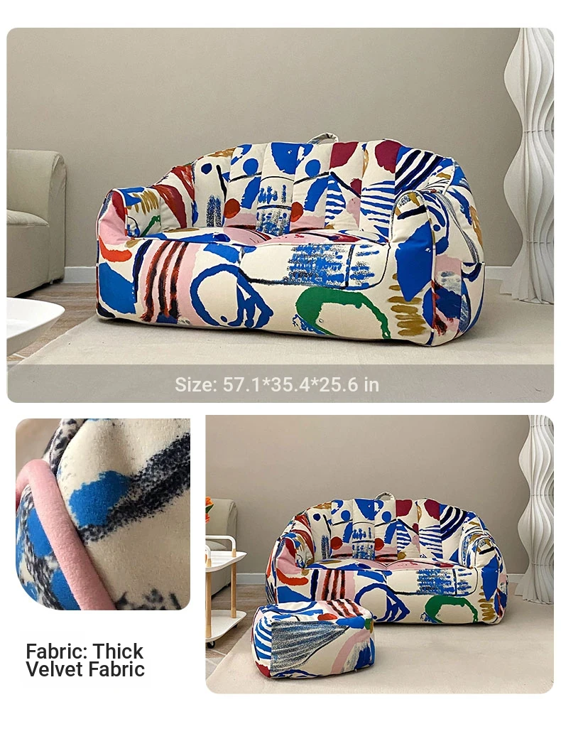 Creative EPP Lazy Bean Bag Sofa - Trendy Ins Graffiti Fabric Lounge Chair for Home, Living Room, and Balcony Comfort