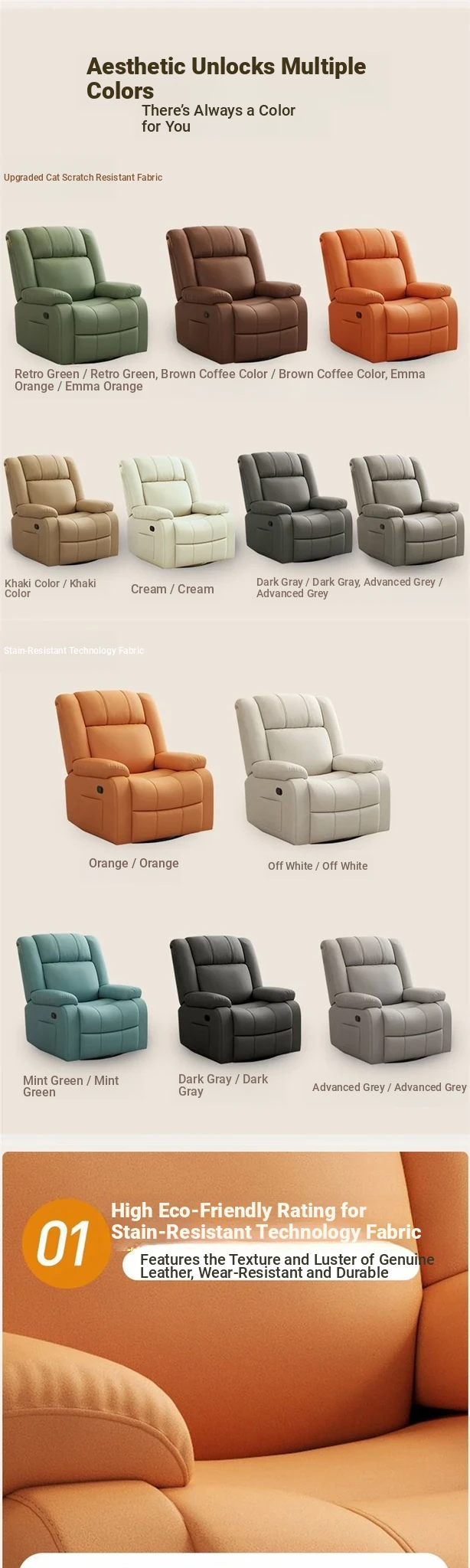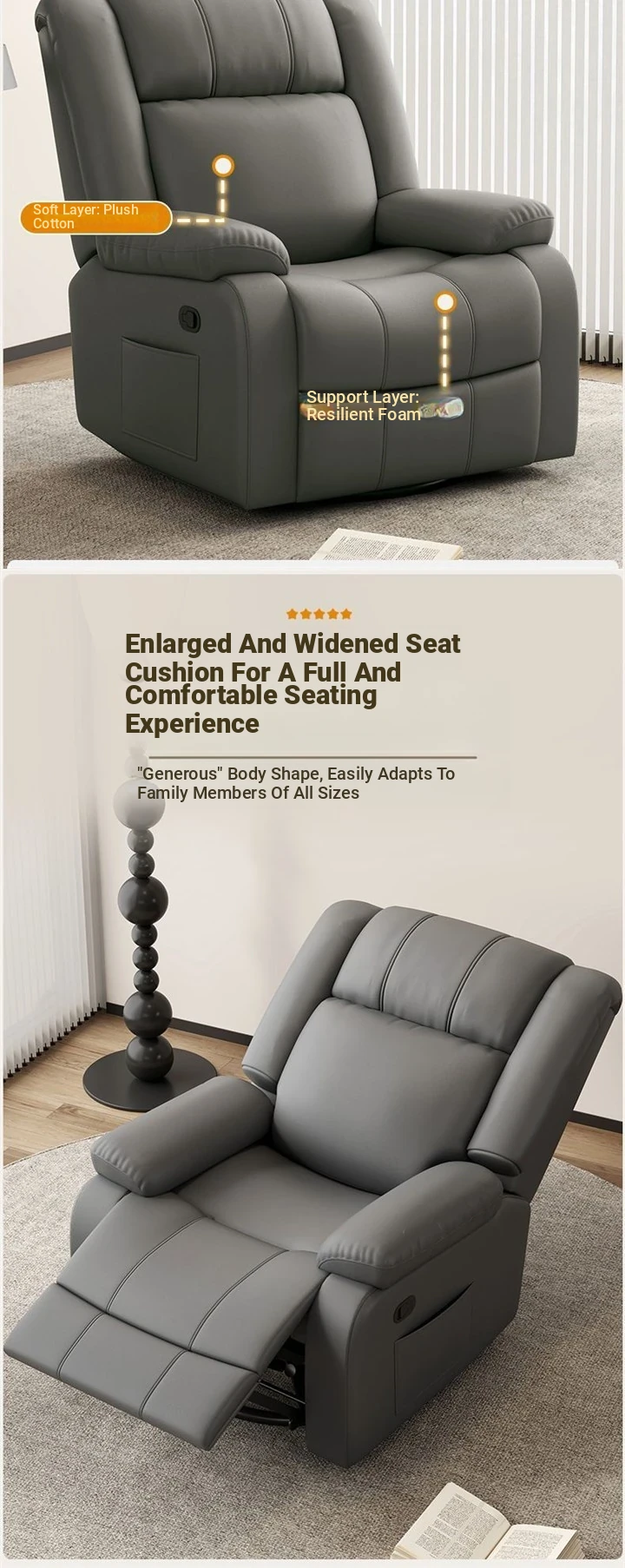 Manually adjust sitting and lying +360 degree swing