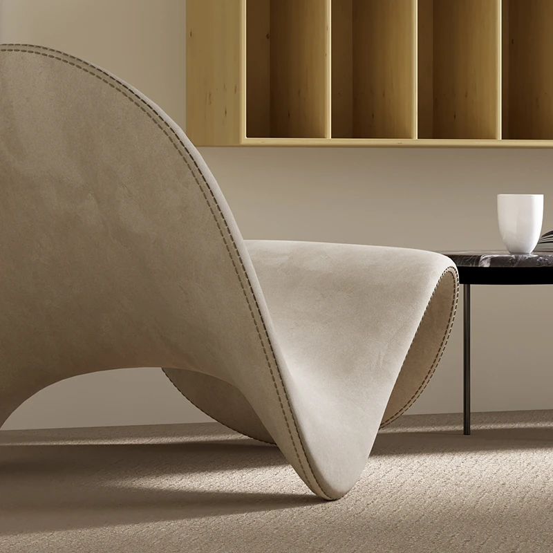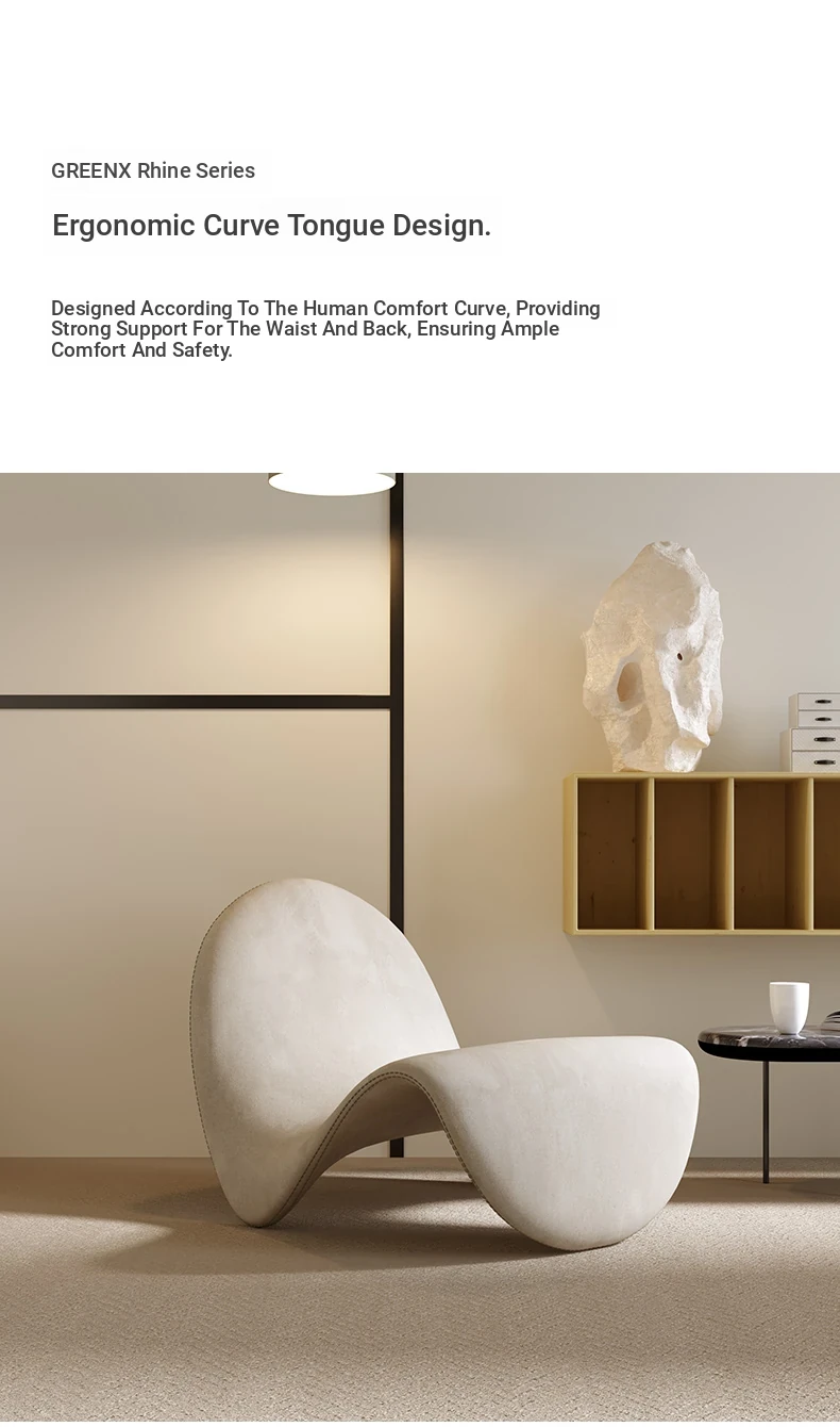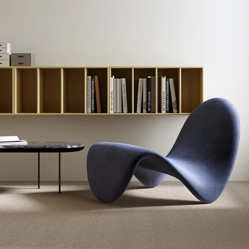 Designer Creative Leisure Chair - Unique Tongue-Shaped Art Sofa, Trendy Fabric Single Lazy Chair for Stylish Living Spaces.