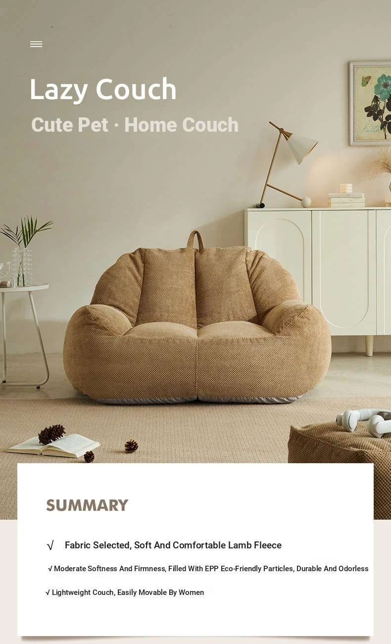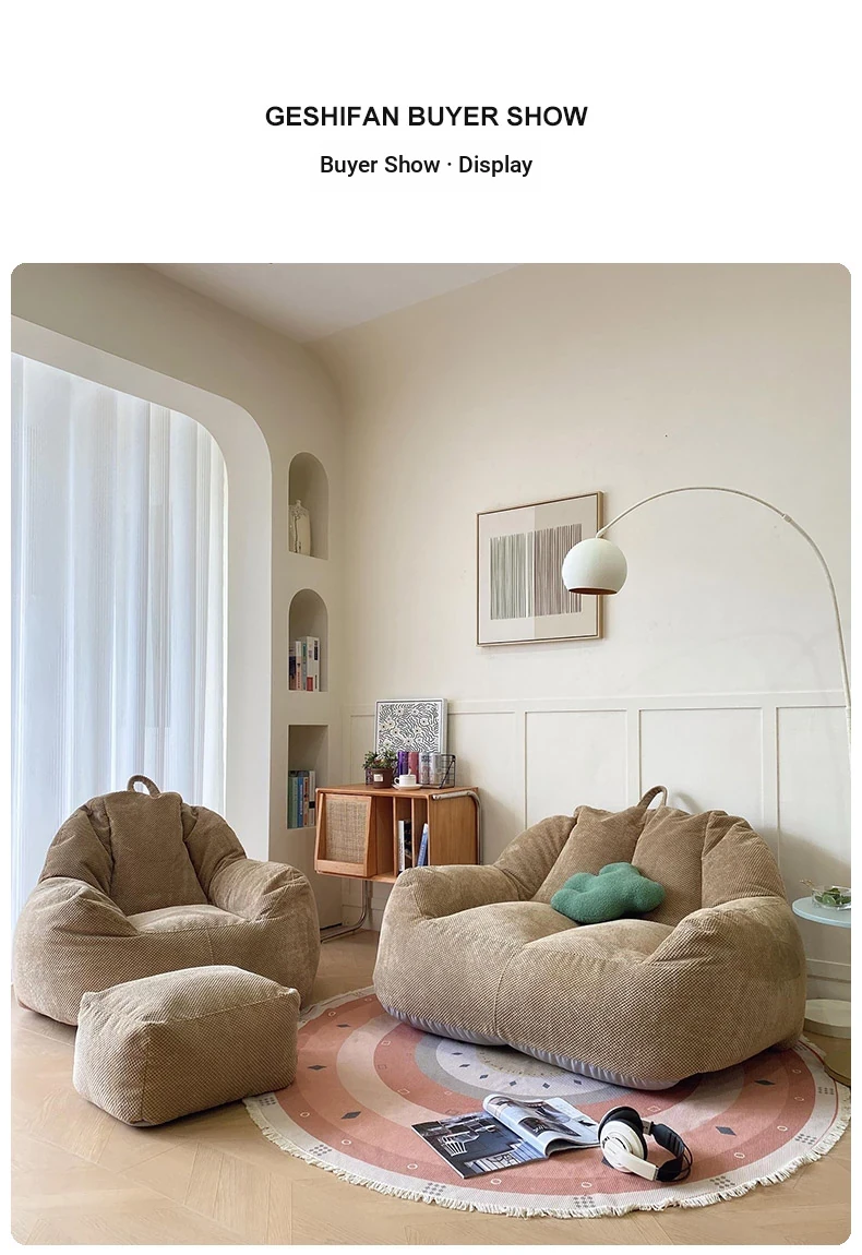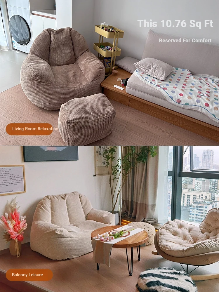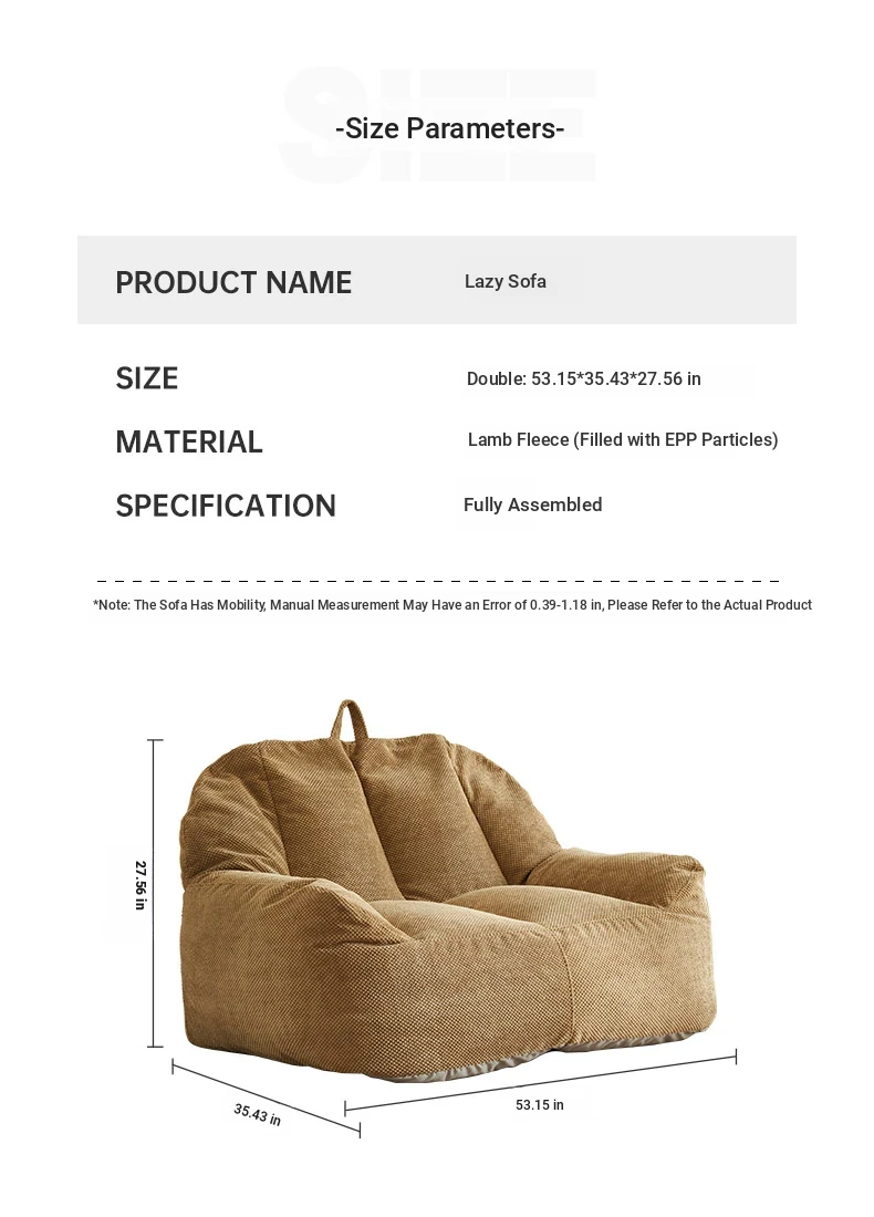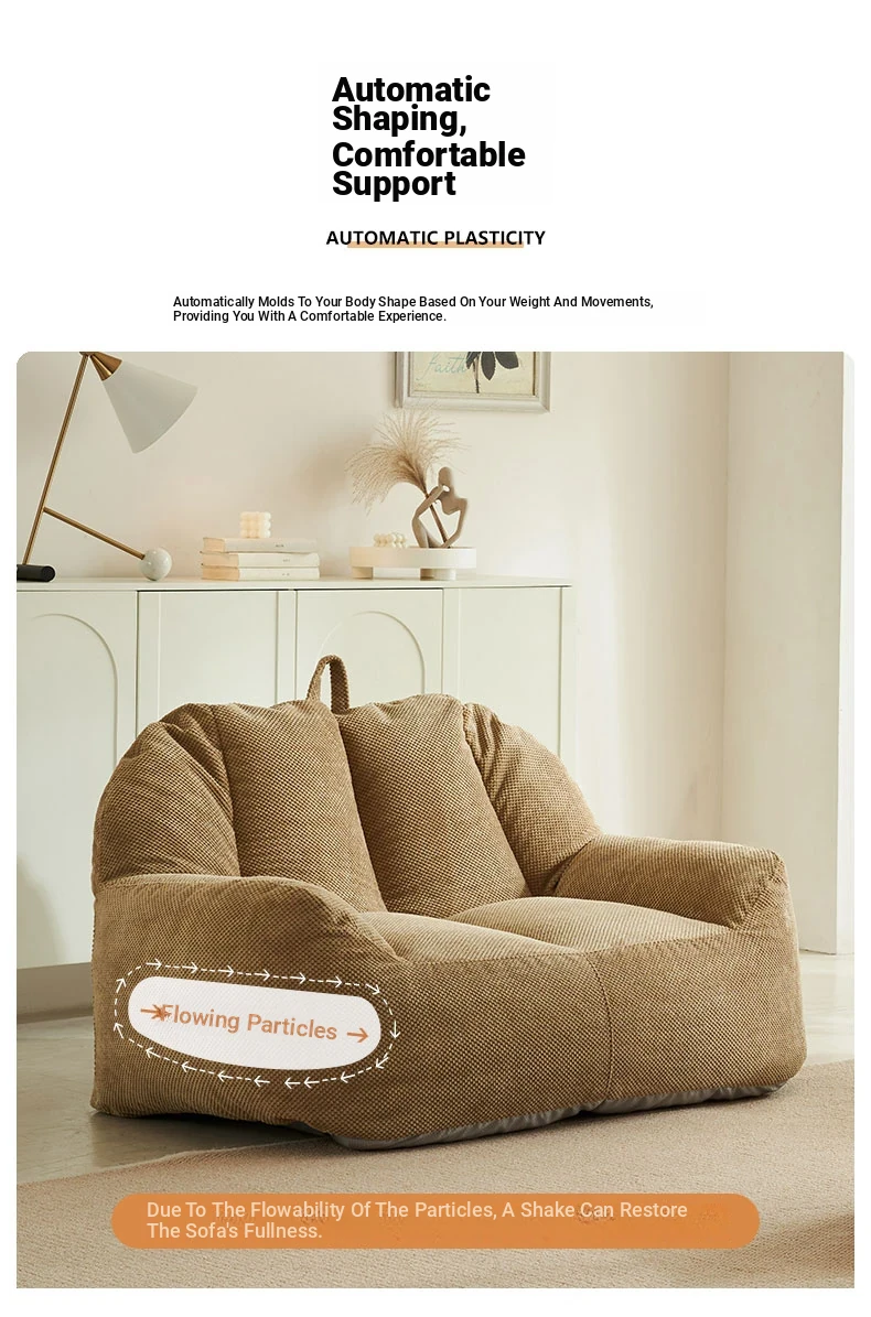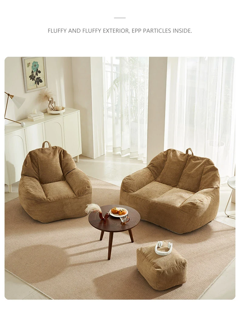 Double Lazy Sofa Bean Bag Chair - EPP Foam, Nordic Style for Small Spaces, Perfect for Living Room, Bedroom, Study, or Balcony Relaxation.