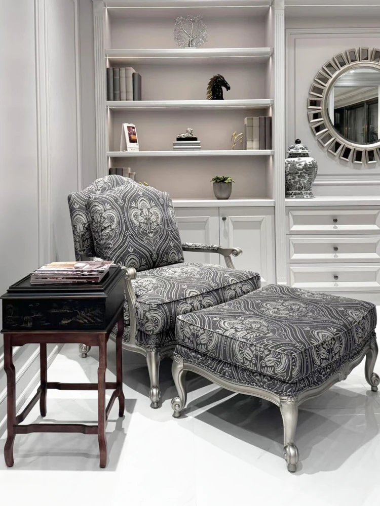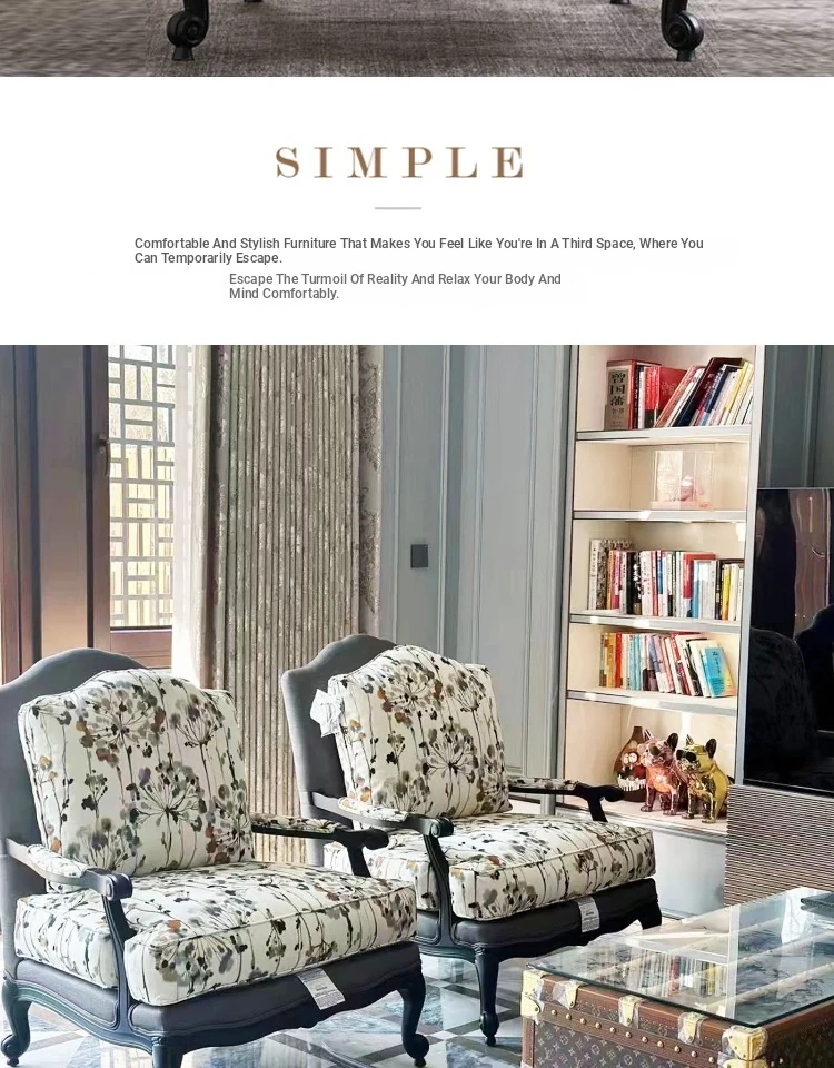 Elegant American-style Champagne Color Solid Wood Leisure Sofa Chair Set - Harris Tiger Chair with Ottoman for Your Cozy Living Room