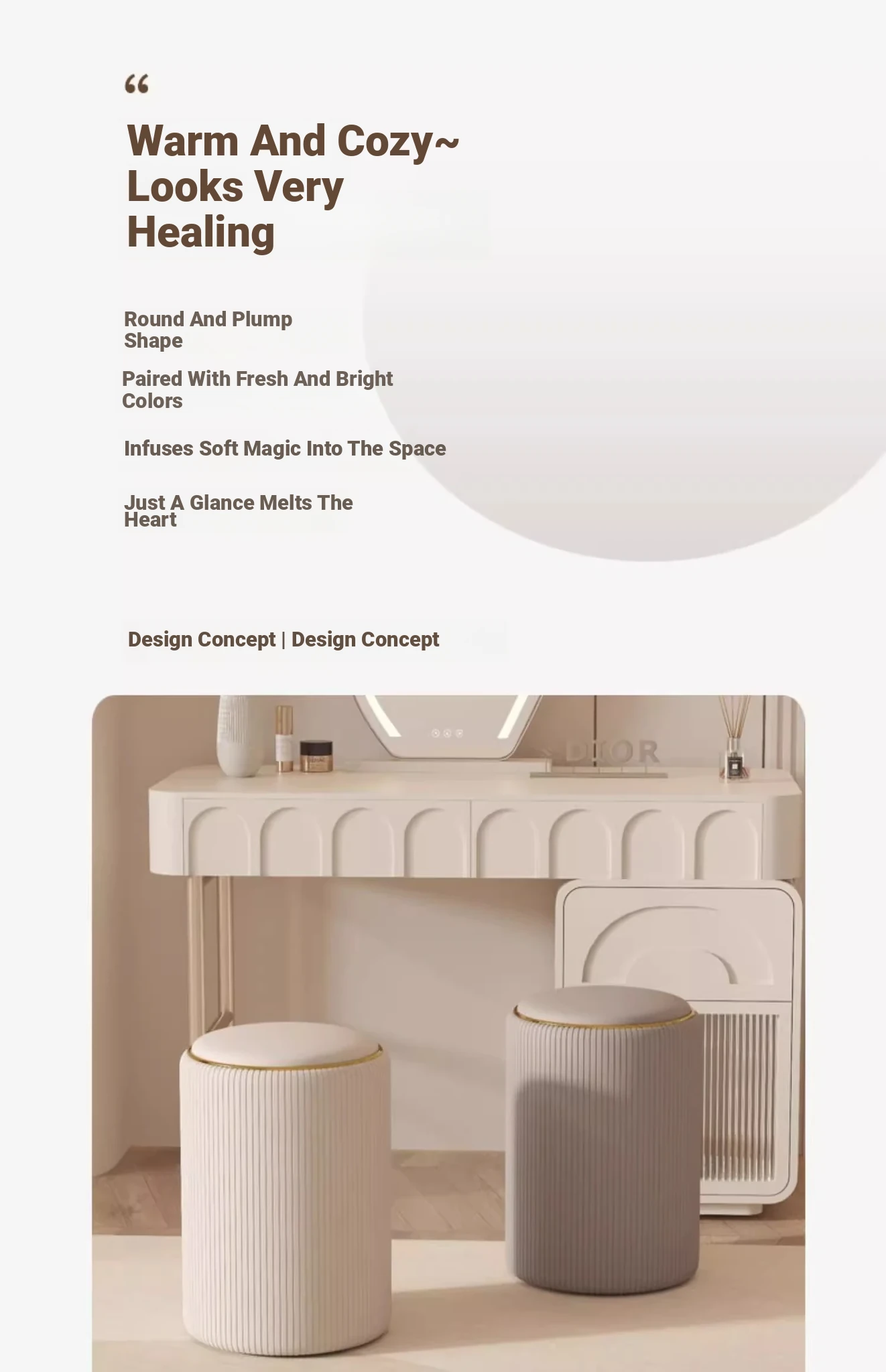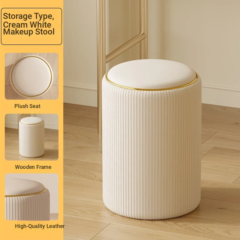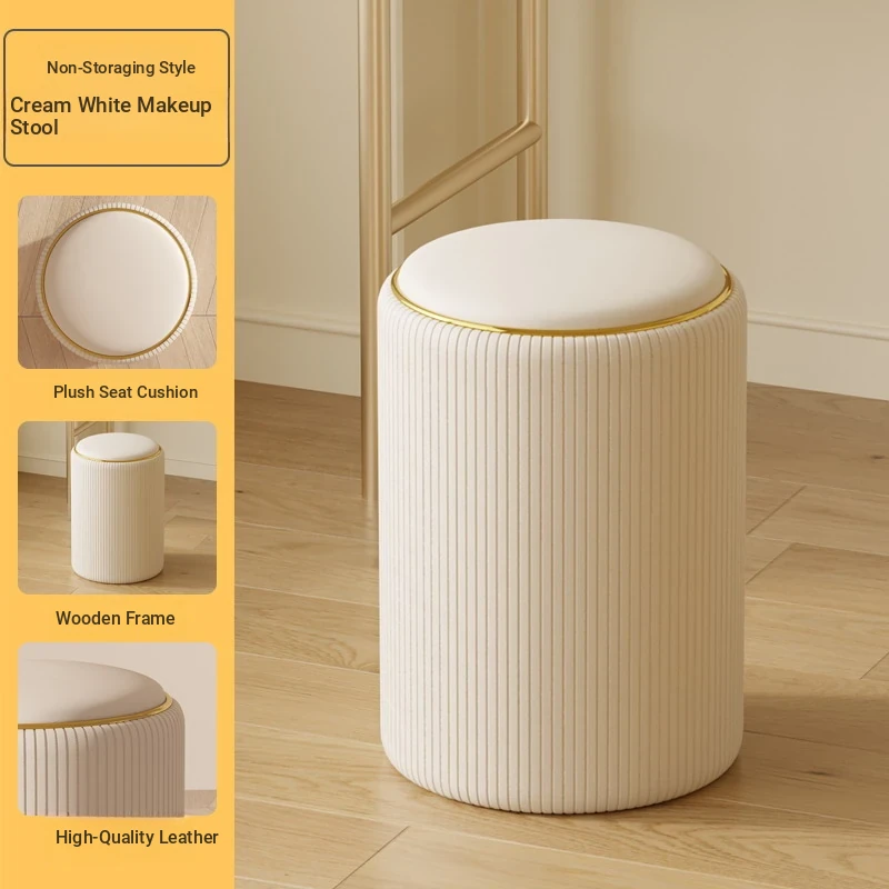 Elegant Makeup Stool for Women - Stylish Vanity Chair with Backrest, Ideal for Home and Bedroom Storage, Chic Round Design for Walk-in Closets and Dressing Areas.