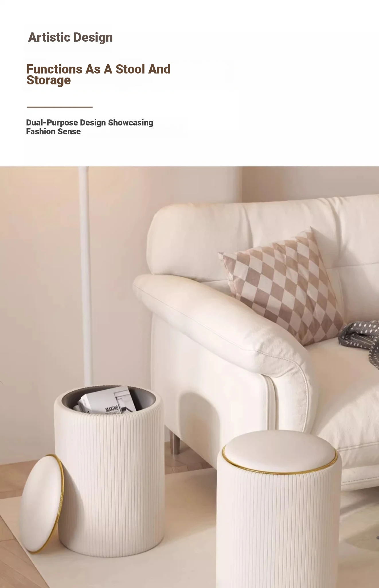 Rice White [not storage] Vertical line makeup stool