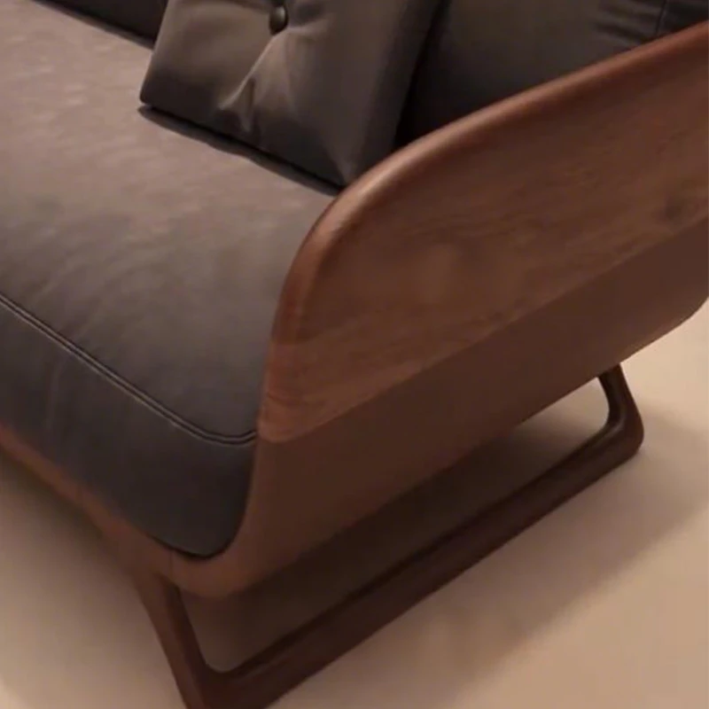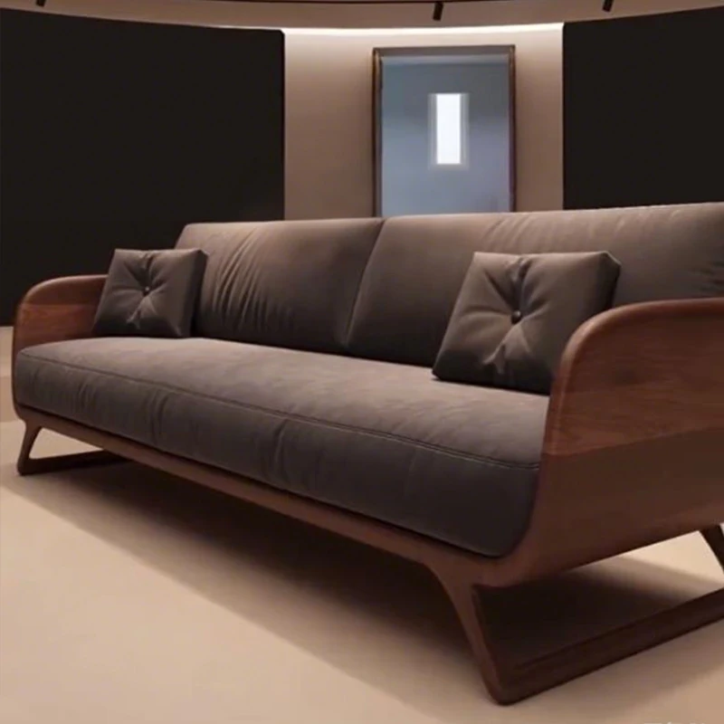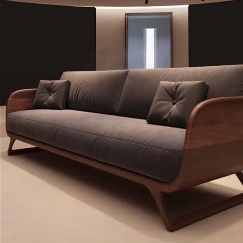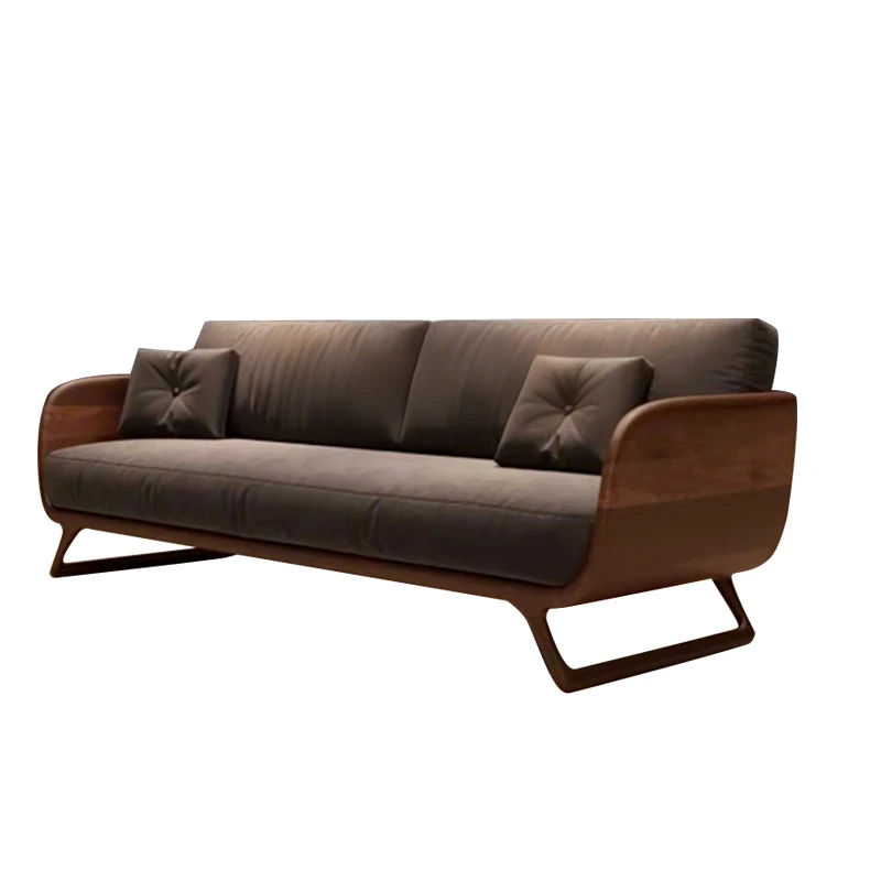 Elegant Minimalist Solid Wood Sofa 2025 - Premium Black Walnut Design for Small Spaces, Modern Straight-Line Upholstered Sofa