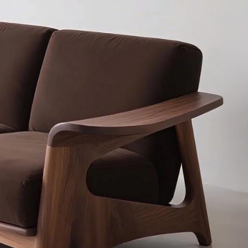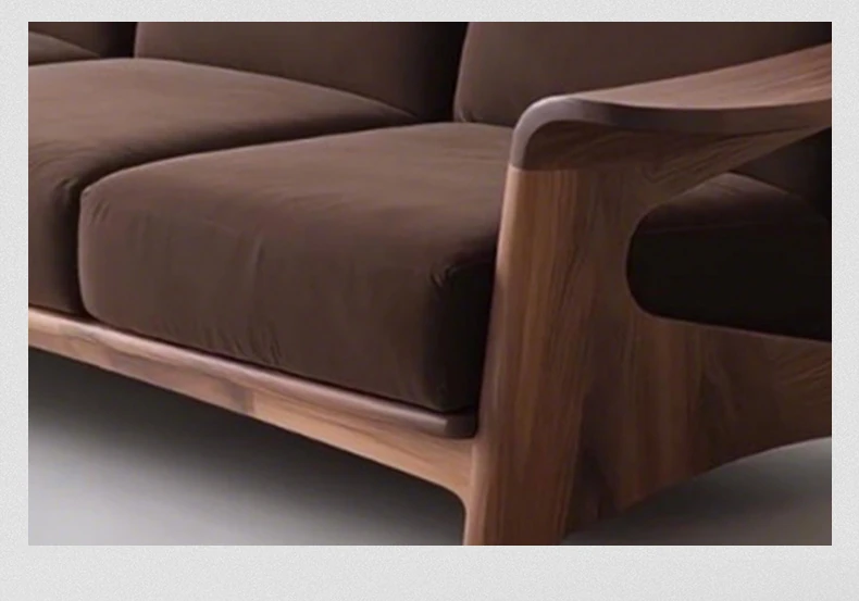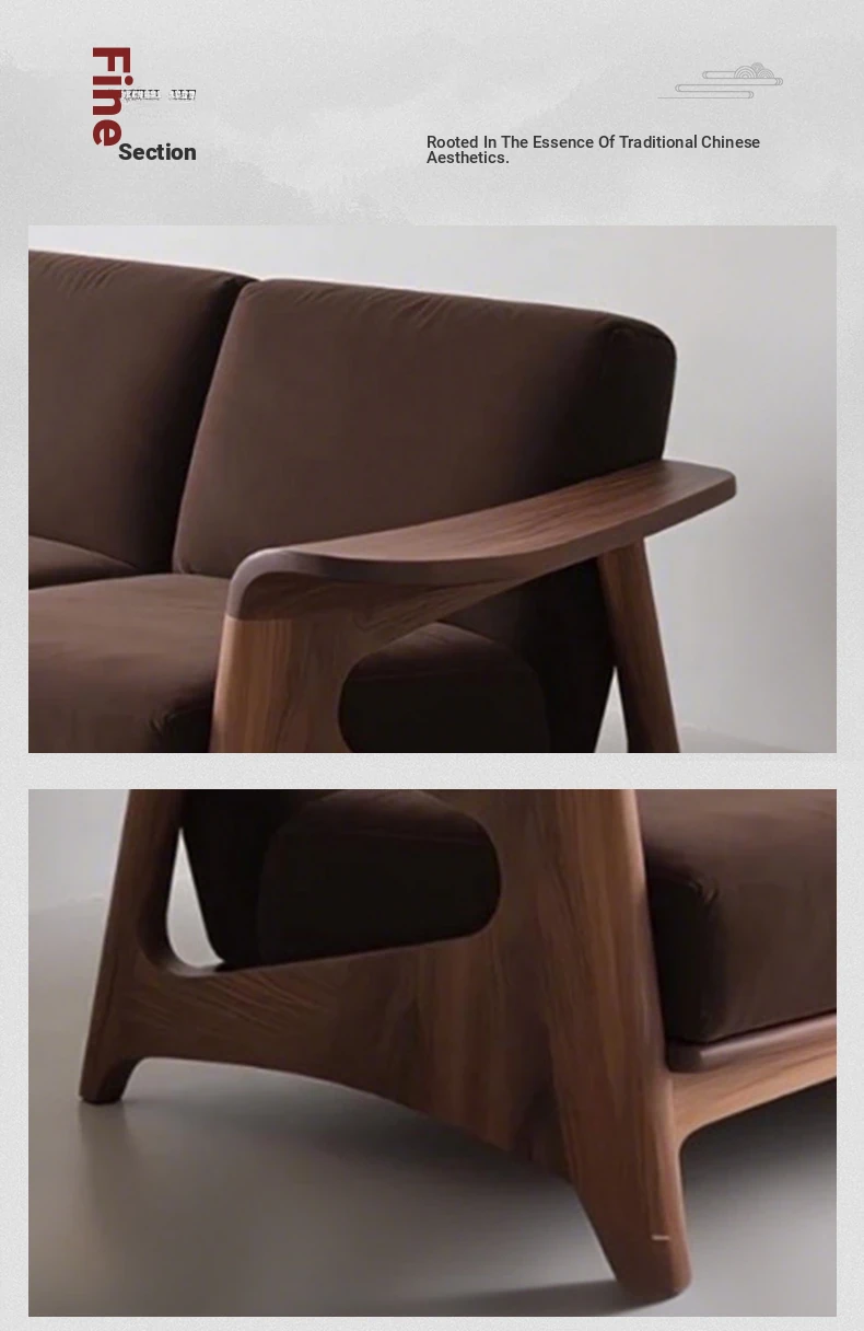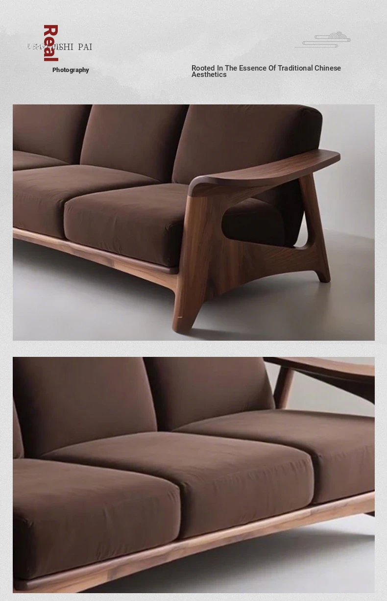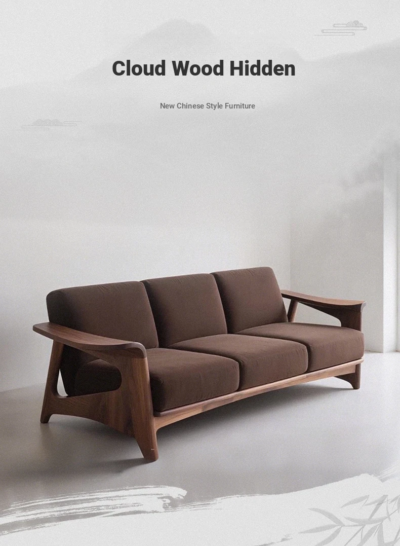 Elegant New Chinese Style Black Walnut Sofa - High-End Solid Wood 3-Seater for Small Spaces, Luxurious Genuine Leather Design for Your Living Room.