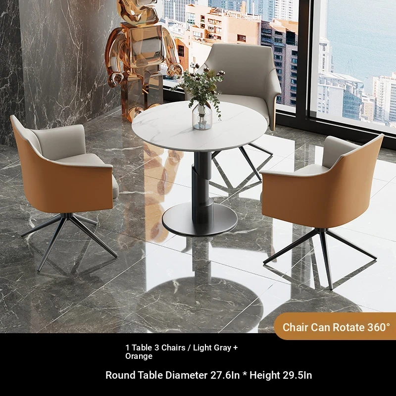 1 table 3 chairs: gray + orange / western leather / rotated + round: 27.56in*29.53in [Snow Mountain white platform]