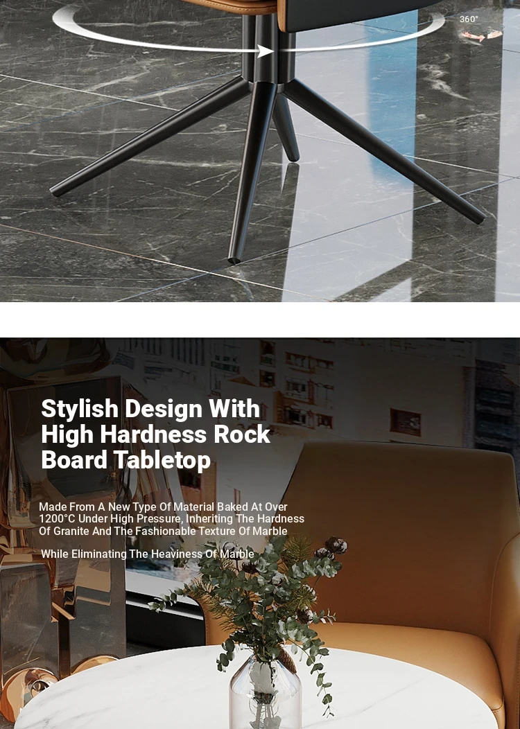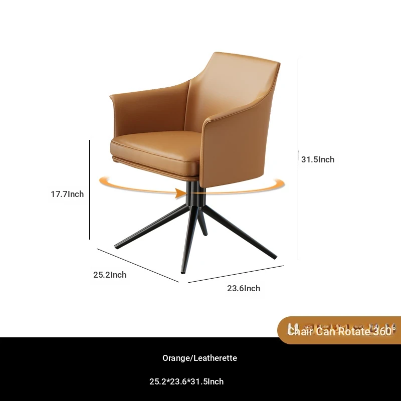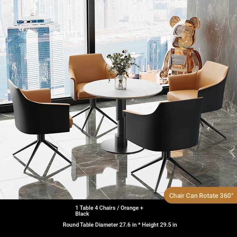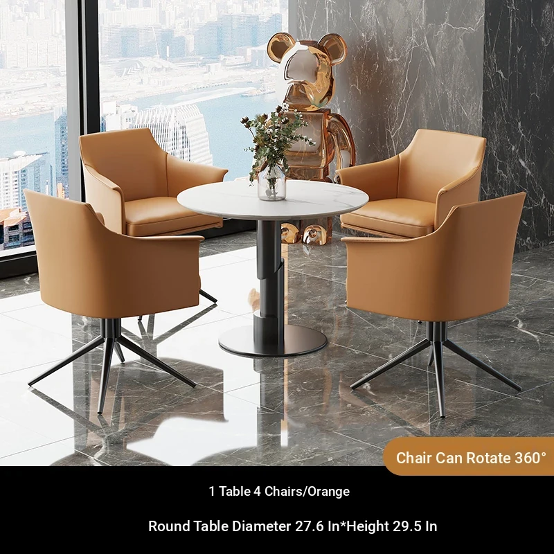 1 table 4 chairs: orange / western leather / rotating + round: 27.56in*29.53in [ snow mountain white platform ]