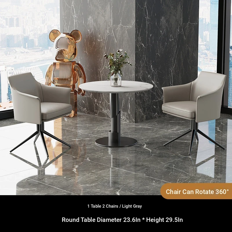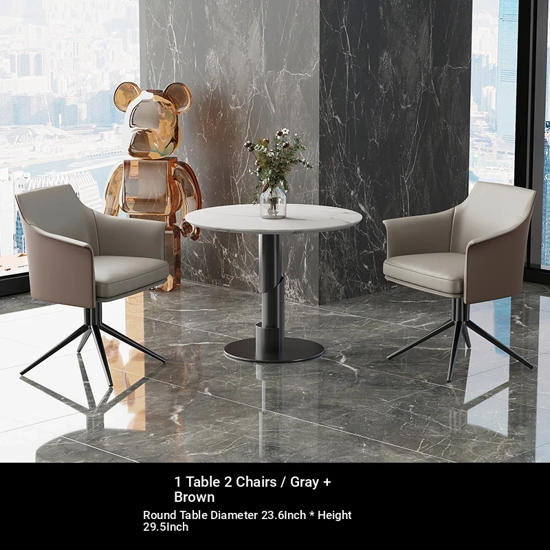 1 table 2 chairs: gray + brown / western leather / rotated + round: 23.62in*29.53in [Snow Mountain white platform]