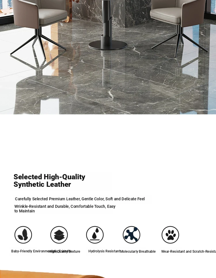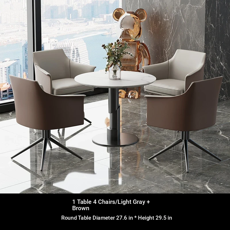1 table 4 chairs: gray + brown / western leather / rotated + round: 27.56in*29.53in [ snow mountain white platform ]