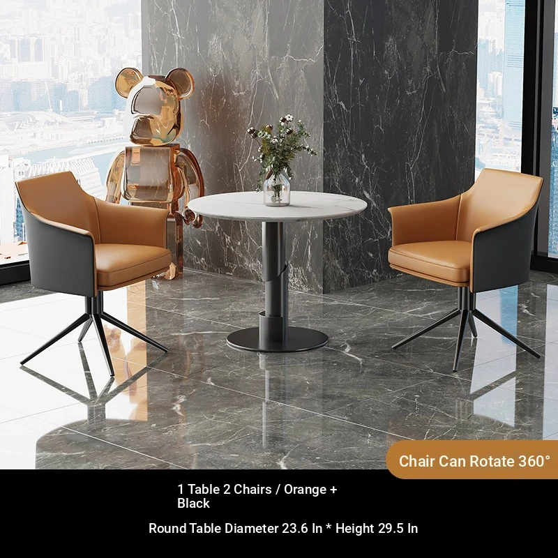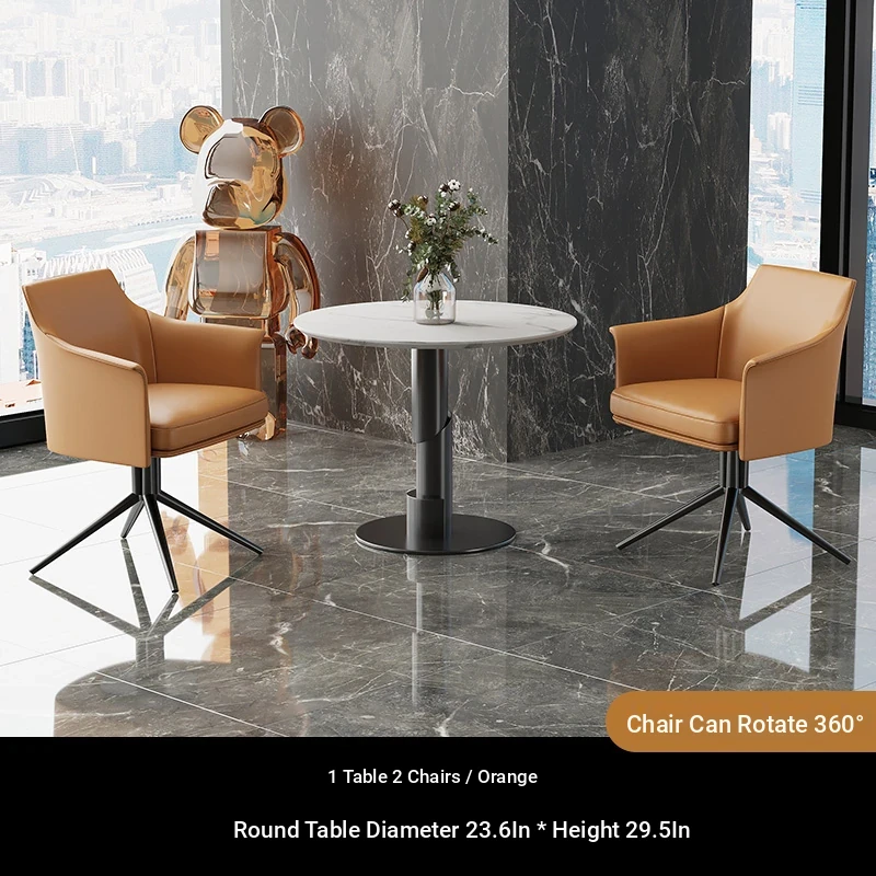 1 table 2 chairs: orange / western leather / rotating + round: 23.62in*29.53in [ snow mountain white platform ]