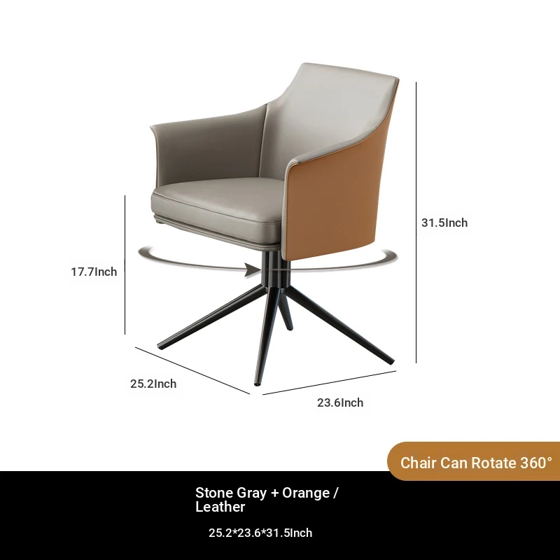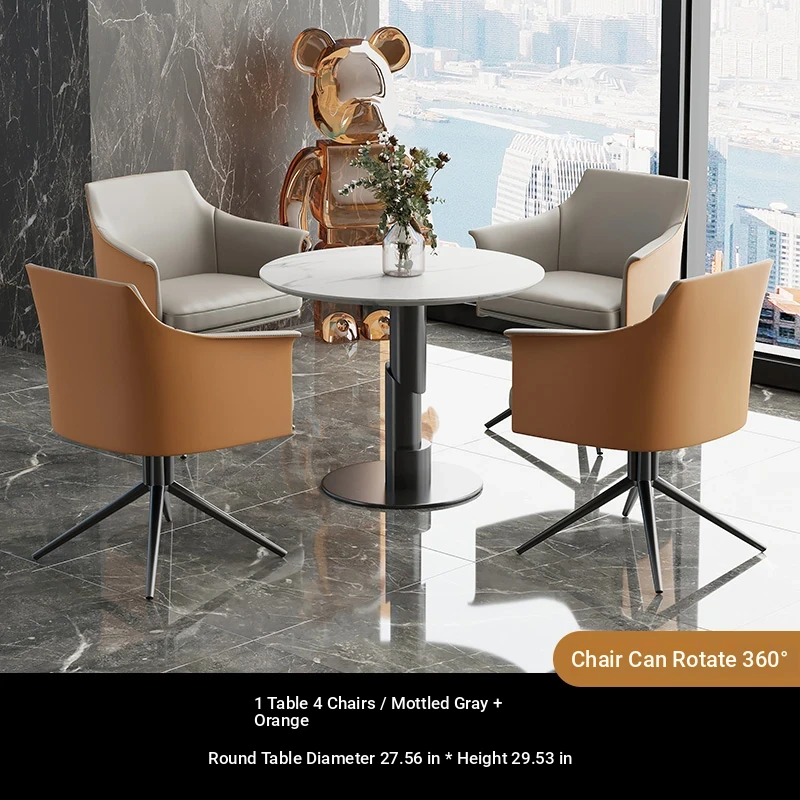 1 table 4 chairs: gray + orange / western leather / rotated + round: 27.56in*29.53in [Snow Mountain white platform]
