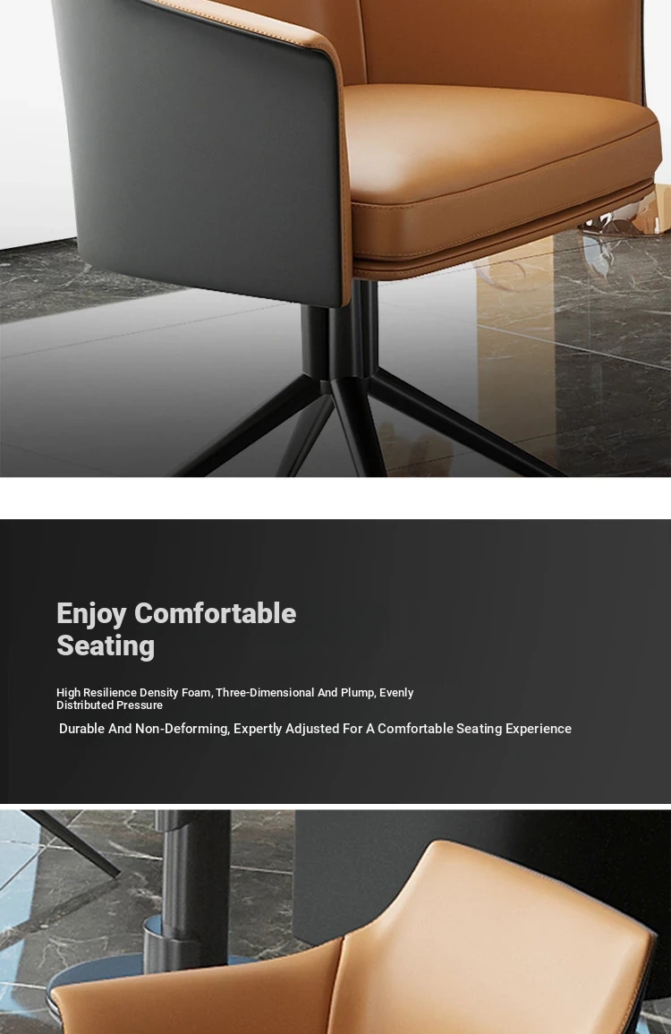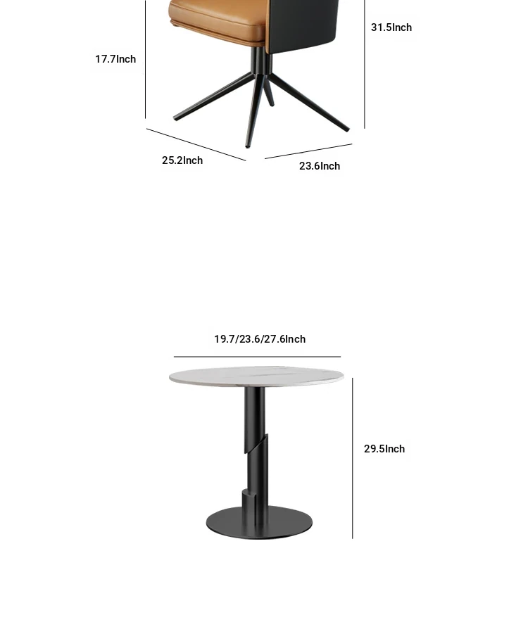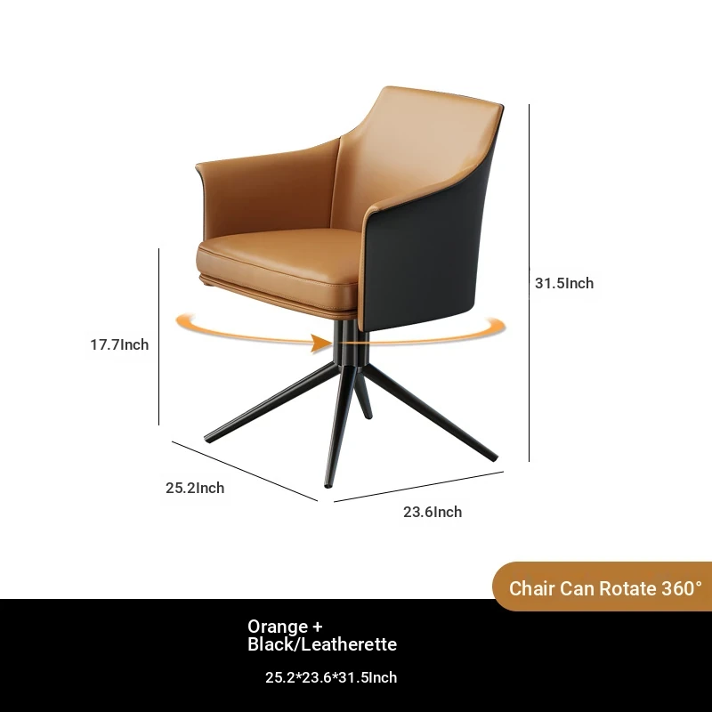 1 table 4 chairs: orange + black / western leather / rotated + round: 27.56in*29.53in [ snow mountain white platform ]