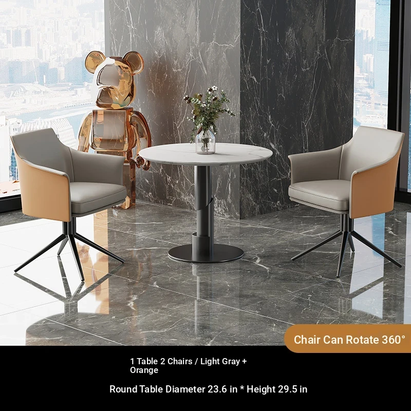 1 table 2 chairs: gray + orange / western leather / rotated + round: 23.62in*29.53in [Snow Mountain white platform]