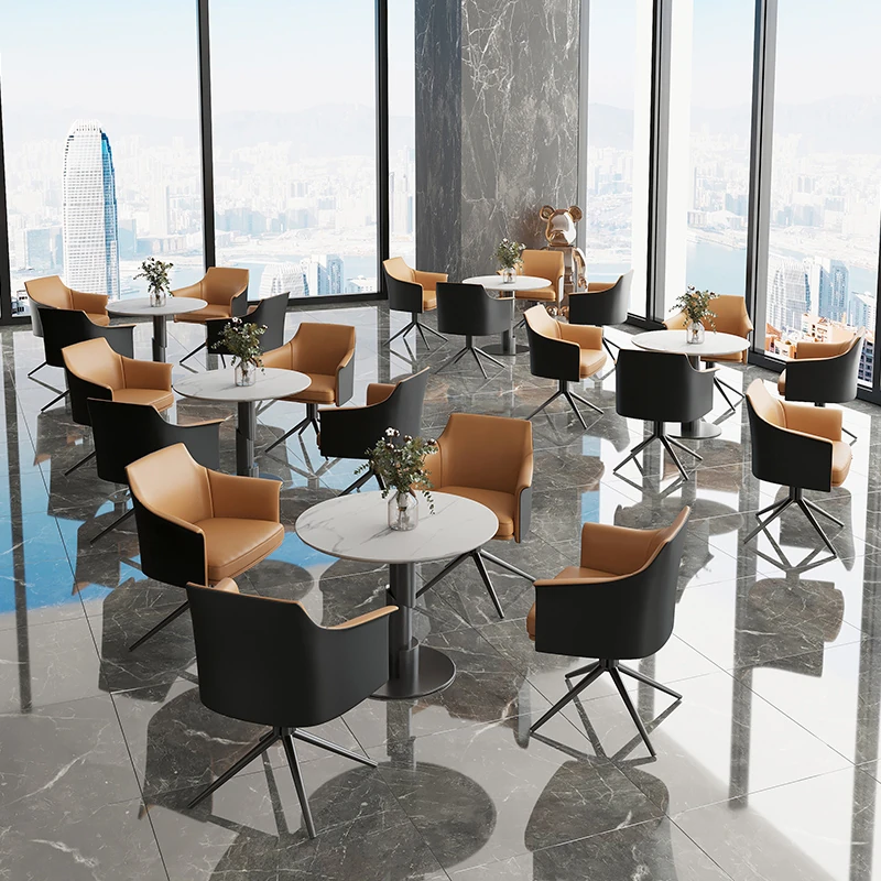 Elegant Sales Office Furniture Set: Stylish Consultation Table and Chairs for Cafés, Hotels, and Reception Areas – Features Chic Swivel Armchair for 4S Stores and Relaxation Spaces. Perfect for Creating a Welcoming Atmosphere!